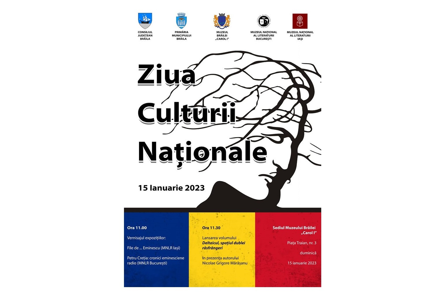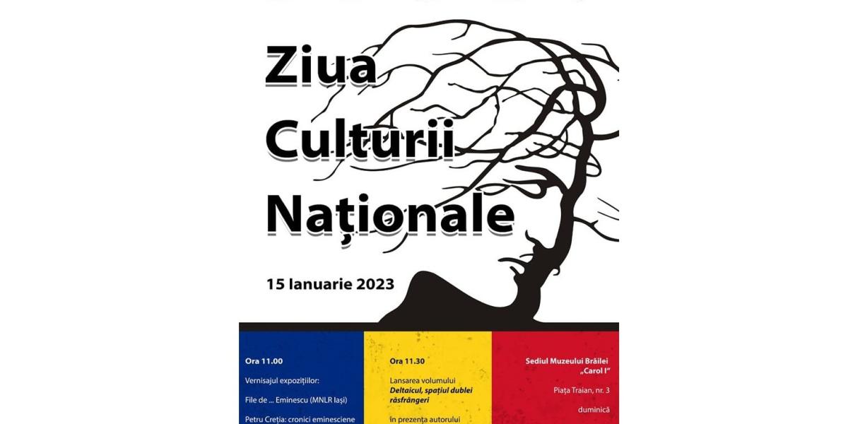 Muzeul Brăilei „Carol I” organizează duminică, 15 ianuarie 2023, începând cu ora 11.00, la sediul central din Piața Traian nr. 3 - în somptuoasa Sală „Regele Ferdinand I și Regina Maria” - o serie de activități culturale dedicate Zilei Culturii Naționale, precum și aniversării a 173 de ani de la nașterea poetului național al românilor, inegalabilului Mihai Eminescu. Evenimentul este organizat în colaborare cu Primăria Municipiului Brăila, Consiliul Județean, Muzeul Național al Literaturii Române București și Muzeul Național al Literaturii Române Iași.