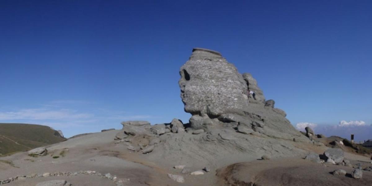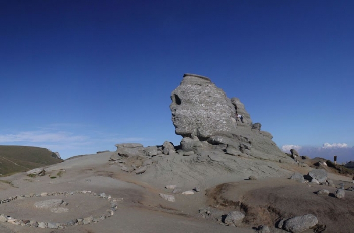 Situat la 2.216 m, cu o înălţime de 8 metri şi o lăţime de 12 metri, Sfinxul, un conglomerat uriaş şi solitar, atrage prin forma sa, dăltuită de marele maestru, natura. Unii l-au asemuit cu capul unui dac, iar alţii cu Sfinxul din Egipt.