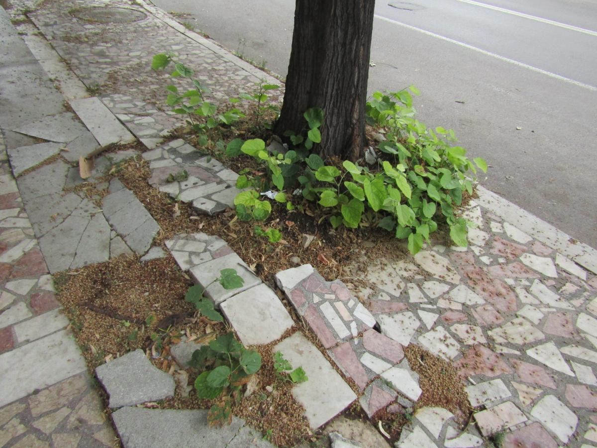 În cazul mai sus menţionat nimeni, în virtutea atribuţiunilor de serviciu, nu a trecut pe acolo, iar cu puţin efort “per pedes” putea constata şi alte nereguli: de la Unirii până la Independenţei, trotuarul din marmură mozaicată este spart şi ridicat de rădăcinile copacilor, iar vizavi, la blocul Istru, un stâlp este înconjurat de câţiva ani cu beton spart şi ţevi de protecţie electrică, iar până deunăzi şi de ditamai bălăriile.