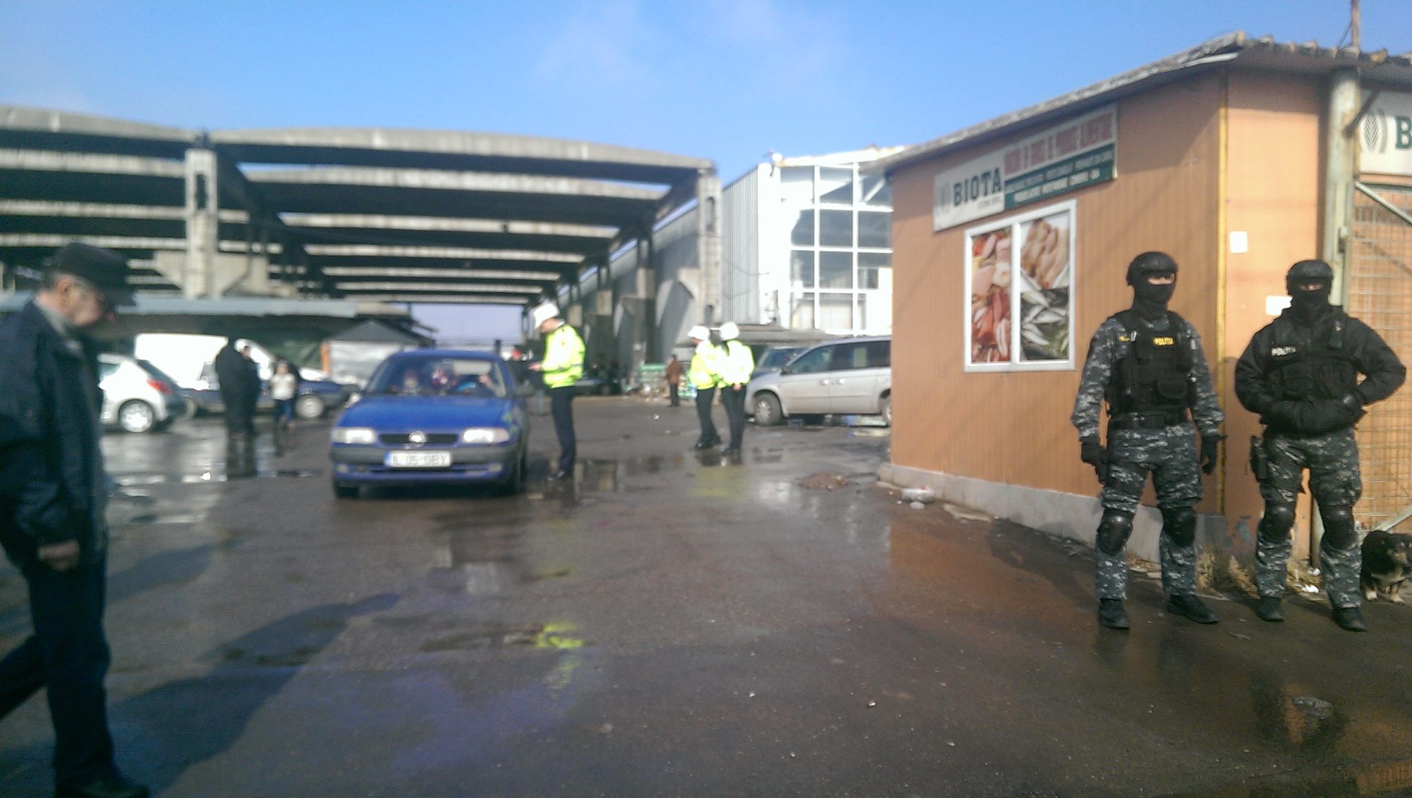 În urmă cu mai puțin de o oră, trupe ale Jandarmeriei și Poliției Brăila ajutate de forțele speciale au descins la Centrul Comercial de pe Râmnicu Sărat, într-o acțiune fără precedent în cadrul căreia sunt vizate activitățile de comerț ilicit. Mascații au blocat toate căile de acces către engros, iar în interior toți comercianții sunt luați la bani mărunți: stocuri, acte, case de marcat etc. În complex nu mai intră nimeni, iar clienții surprinși la cumpărături în momentul raziei, la ieșire sunt verificați la bonuri sau facturi și controlați în sacoșe sau portbagaje.