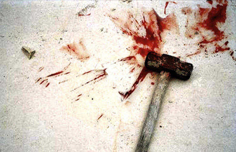 În februarie 2017, când s-a petrecut agresiunea - şi când s-a făcut cercetarea la locul faptei - în singura cameră locuibilă în care trăiesc cei doi concubini se aflau următoarele: un pat lângă peretele din dreapta uşii de acces, un altul lângă peretele opus uşii, soba cu plită într-un colţ. În stânga uşii se afla o masă, iar între masă şi sobă o buturugă folosită ca scaun. Lângă sobă se afla un ciocan.