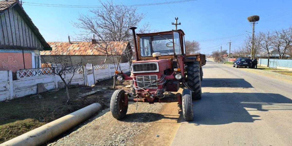 Polițiștii de frontieră din cadrul Sectorului Poliției de Frontieră Brăila efectuează cercetări față de un bărbat care a fost depistat în trafic conducând un ansamblu rutier format dintr-un tractor și o remorcă ce nu avea aplicate plăcuțe cu număr de înmatriculare sau înregistrare.