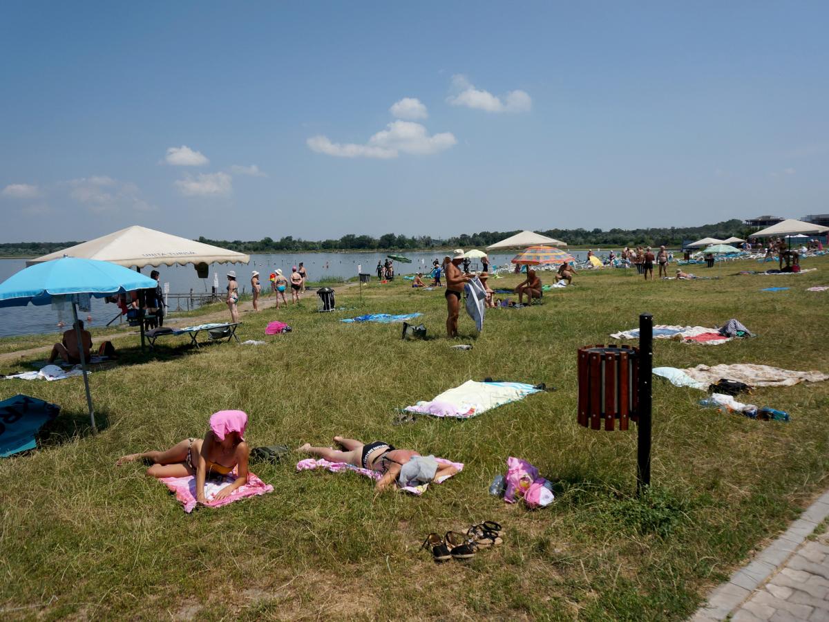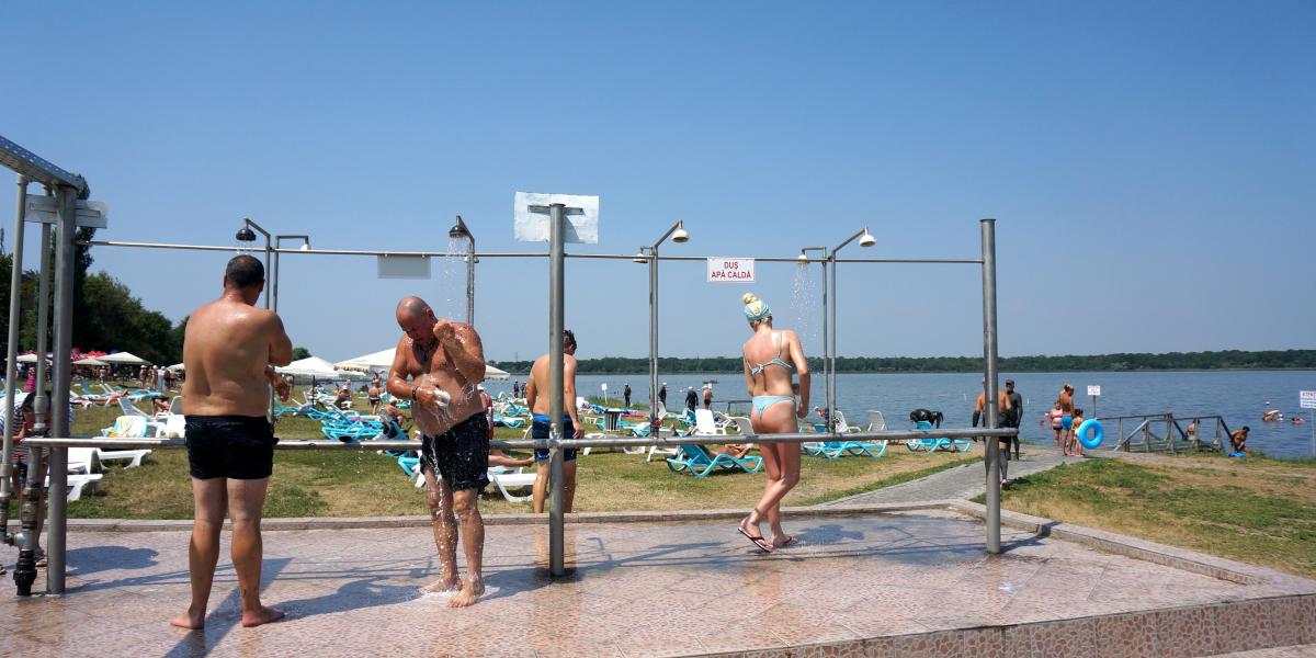 * apa caldă pe plajă este doar una dintre schimbările majore pe care le găsesc turiștii față de anii trecuți * o altă schimbare, venită de la natură, este legată de faptul că lacul a revenit la nivelul normal, fără să mai fie nevoie de apa pompată din canalele de irigații * schimbat este, însă, și tariful de acces pe plajă, de la 10 lei cât era anul trecut, la 15 lei în prezent * unii turiști sunt nemulțumiți de acest aspect * alții spun că nu îi deranjează prețul și că sunt mulțumiți de condițiile găsite pe plajă