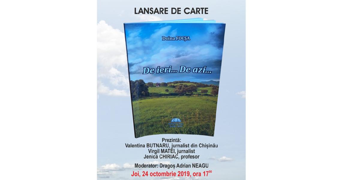 • astăzi, joi, 24 octombrie 2019, ora 17.00, are loc lansarea cărţii “De ieri… De azi”, semnată de Doina Focşa