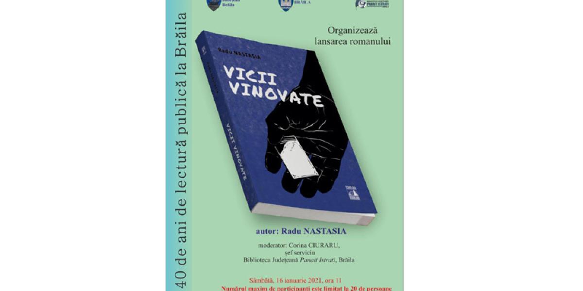 Biblioteca Județeană „Panait Istrati” deschide seria de evenimente din anul 2021 sub genericul “140 de ani de lectură publică la Brăila” iar sâmbătă, 16 ianuarie, de la ora 11.00, găzduiește lansarea romanului „Vicii Vinovate”, semnat de Radu Nastasia.