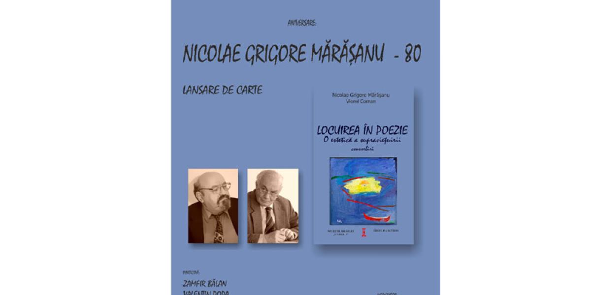 Evenimentul este dedicat aniversării poetului Nicolae Grigore Mărăşanu şi va fi moderat de Ionel Cândea, directorul instituţiei gazdă, iar la discuţii vor participa: Zamfir Bălan, Valentin Popa şi Vasile Datcu.