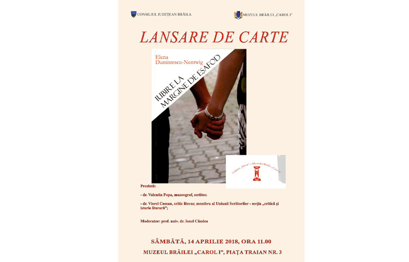 Sâmbătă, 14 aprilie 2018, ora 11,00, în sala de festivităţi a Muzeului Brăilei “Carol l” va avea loc lansarea cărţii “Iubire la margine de eşafod”, de Elena Dumitrescu Nentwig, apărută la Editura Istros în acest an.