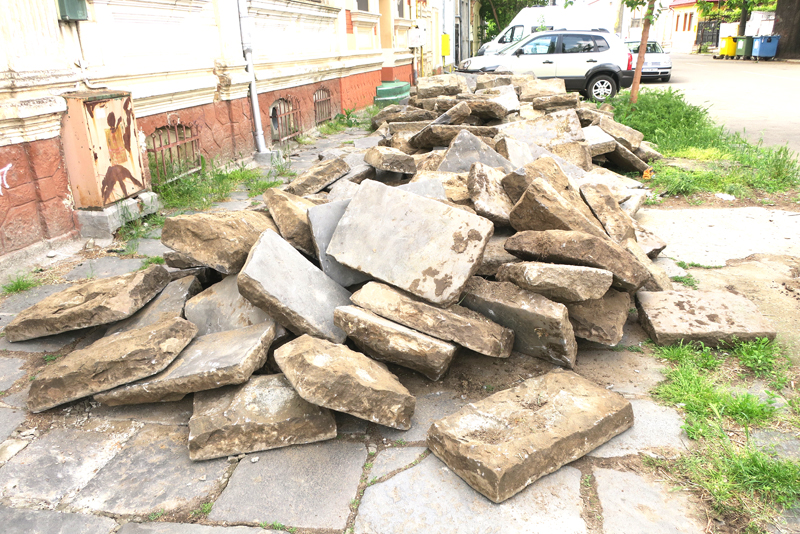 Reabilitarea trotuarelor străzii G-ral. Eremia Grigorescu (fosta Gării) a ajuns în zona tronsonului dintre strada Plevnei și bulevardul Independenței, unde pe paviment nu este asfalt ci dale de bazalt. Acele dale care pe vremuri acopereau trotuarele din aproape tot orașul, însă acum mai pot fi găsite doar în câteva locuri. Cele de pe strada G-ral. Eremia Grigorescu sunt scoase zilele acestea și stivuite la intersecția cu Plevnei. Am întrebat reprezentanții Primăriei dacă acestea vor mai fi repuse pe poziție sau vor fi scoase definitiv din uz, pentru ca și pe acea porțiune de trotuar să fie pus tot asfalt, ca pe restul străzii. Ni s-a răspuns că nu se pune problema ca dalele bazaltice să fie mutate de acolo. ”Sunt scoase temporar doar pentru a se alinia bordura și a se da cotele de scurgere a apelor pluviale, după care vor fi puse la loc, aliniate la cotă și așezate mai bine decât erau până acum. Aceste dale de bazalt, sau lave cum sunt denumite în limbaj tehnic, fac parte din istoria Brăilei, iar cele pe care le mai avem, în special în Centrul Vechi al orașului, nu vor fi înlocuite cu alt tip de paviment”, ne-a precizat un responsabil cu lucrarea de pe strada G-ral. Eremia Grigorescu. După cum v-am mai informat, lucrările de reparații derulate în prezent pe această stradă sunt executate de firma ”Concivia”, în cadrul unui contract multianual de întreținere străzi încheiat cu Primăria Brăila.