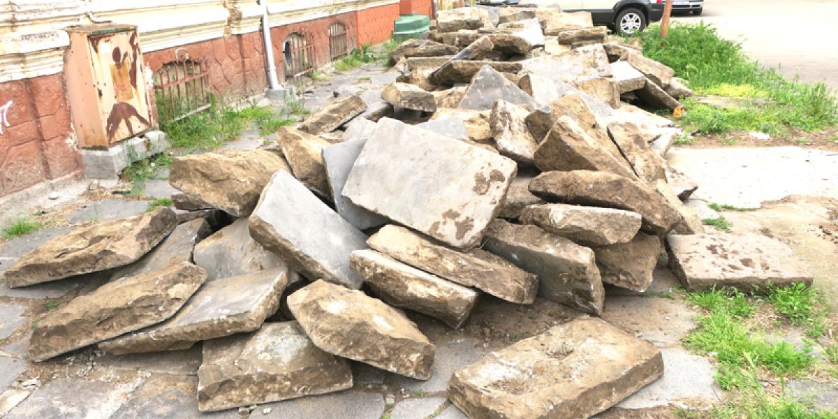Legenda spune că bucățile de bazalt au fost aduse în cantități impresionante la Brăila de navele care soseau din Italia, în secolul XIX, pentru a face comerț. Bazaltul era folosit ca lest pentru echilibrarea corăbiilor, iar în port era descărcat pentru a face loc grânelor sau altor mărfuri. În timp, autoritățile brăilene au prelucrat acele bucăți de bazalt și le-au folosit pentru pavarea străzilor și trotuarelor din oraș, într-o vreme când mixturile asfaltice încă nu erau folosite pe scară largă.