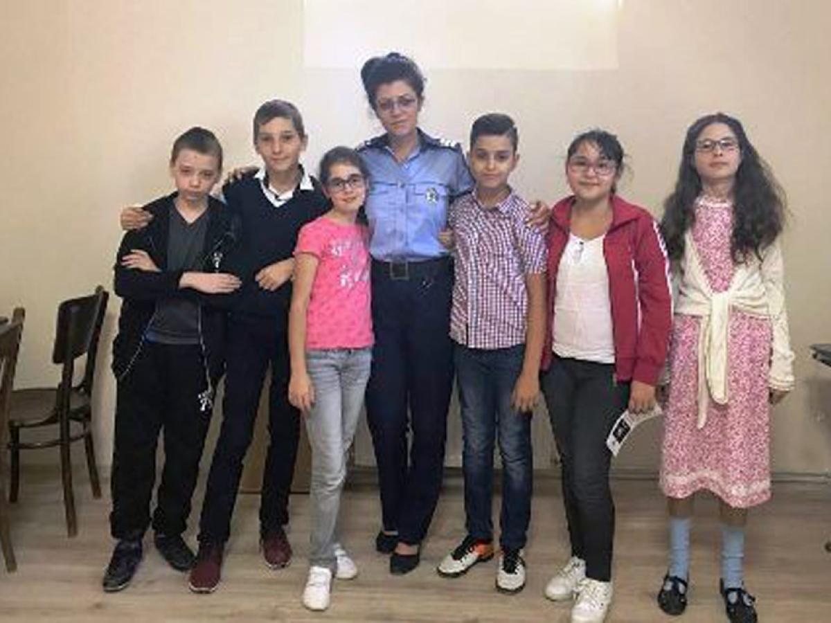 • în ultimele două zile, oamenii în uniformă au mers la şcoală şi au stat de vorbă cu copiii, cărora le-au recomandat, în primul rând, să nu adopte un comportament violent, indiferent de situaţie • s-a vorbit şi despre pericolul de pe internet, dar şi cel de pe şosele