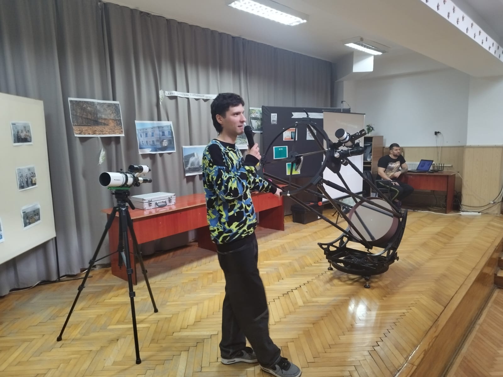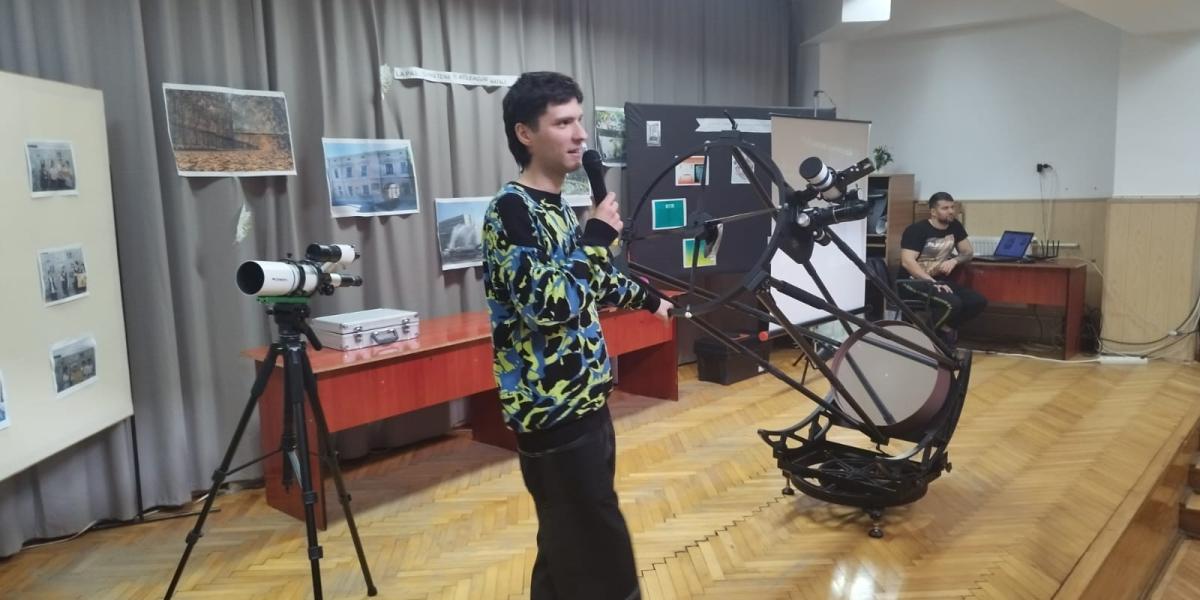Andrei le-a prezentat elevilor noțiuni de astronomie, le-a arătat instrumentele pe care le deține, printre care se numără și cel mai mare telescop astronomic personal din țară, imagini realizate în cadrul ieșirilor organizate de astroclub și, bineînțeles, i-a invitat pe cei pasionați și curioși să li se alăture. În cadrul întâlnirii, tânărul pasionat de astronomie a vorbit și despre o mare problemă cu care ne confruntăm astăzi, cea a poluării luminoase, care capătă proporții covârșitoare odată cu dezvoltarea orașelor.