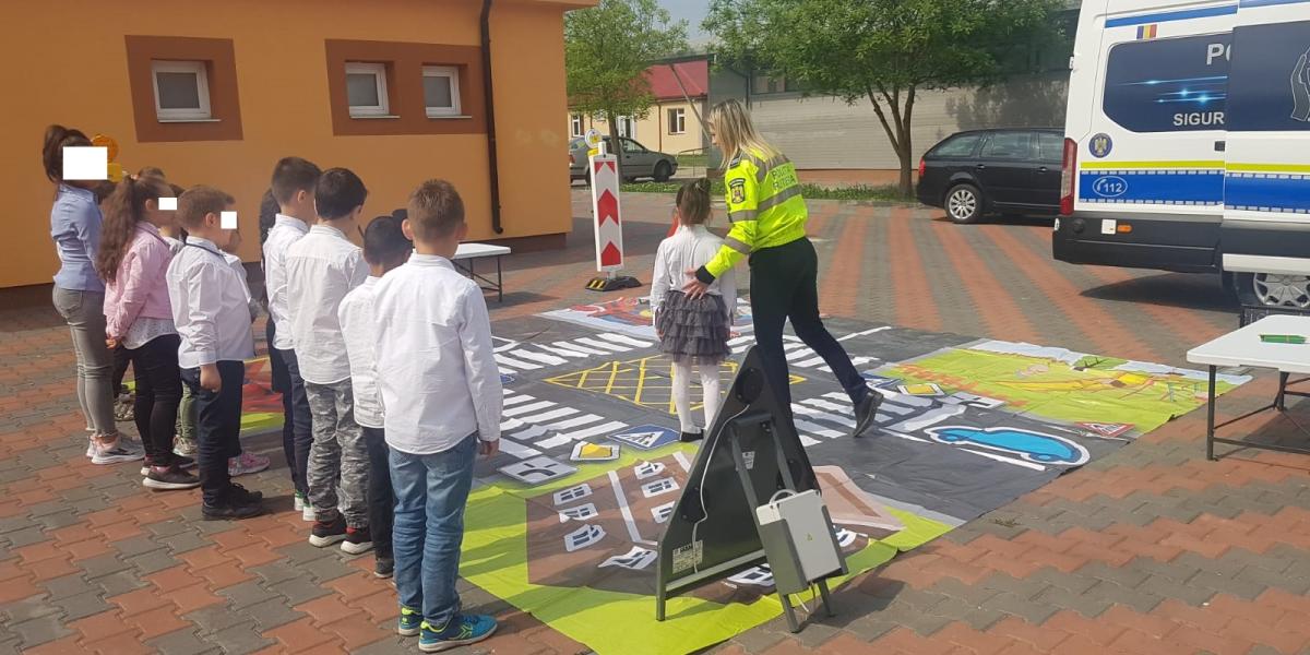 Copiii au verificat însuşirea informaţiilor primite prin intermediul unor fişe de lucru tematice şi au exersat împreună cu poliţiştii rutieri deplasarea corectă pe drumurile publice, traversarea acestora şi respectarea marcajelor şi a indicatoarelor rutiere.