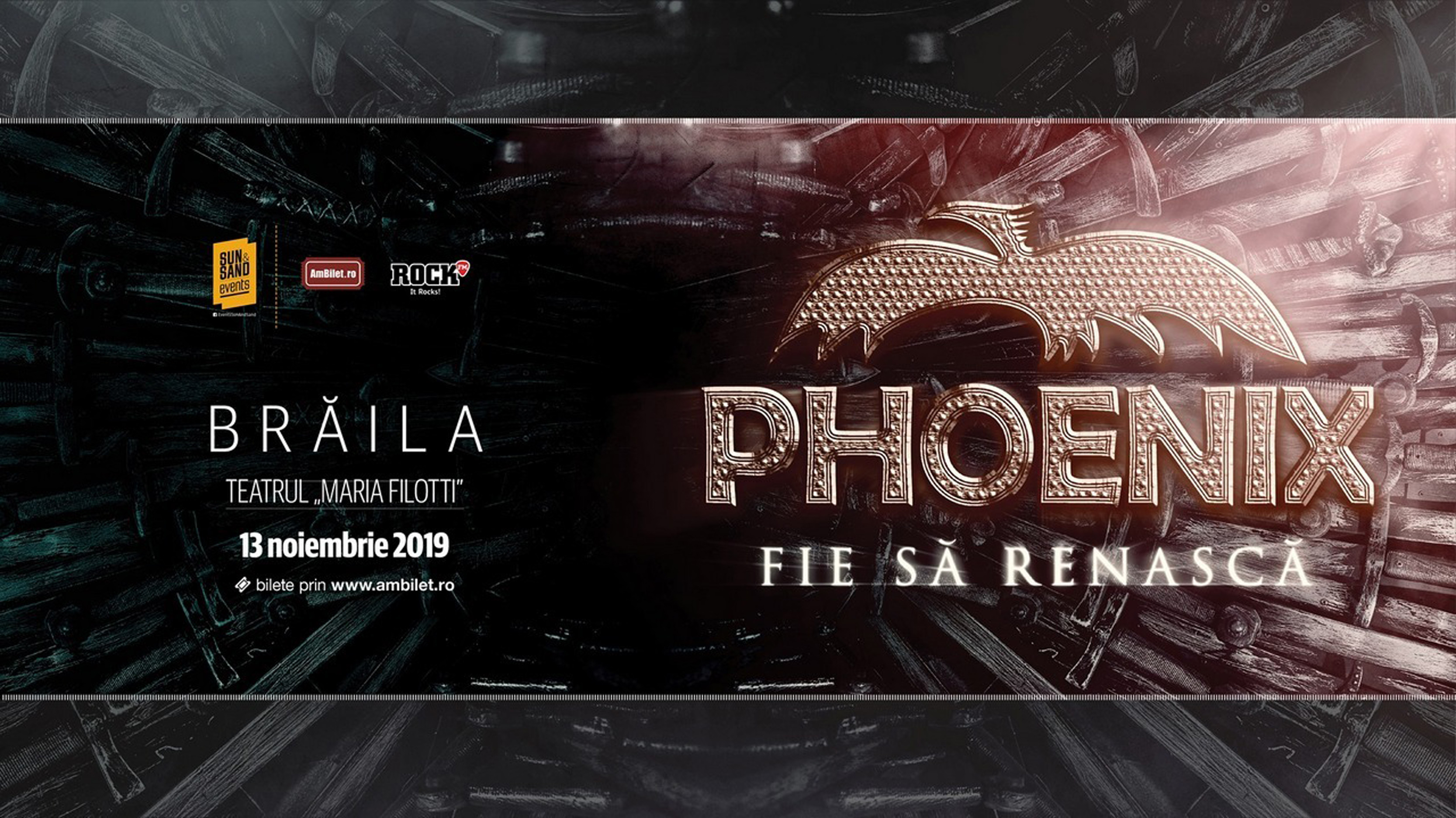 Phoenix, legenda rock-ului românesc revine la Brăila luna viitoare pentru un concert extraordinar. Trupa va urca pe scena Teatrului “Maria Filotti”, în data de 13 noiembrie, în intervalul orar 19:00 - 21:00, după cum se specifică pe pagina oficială de Facebook a evenimentului.