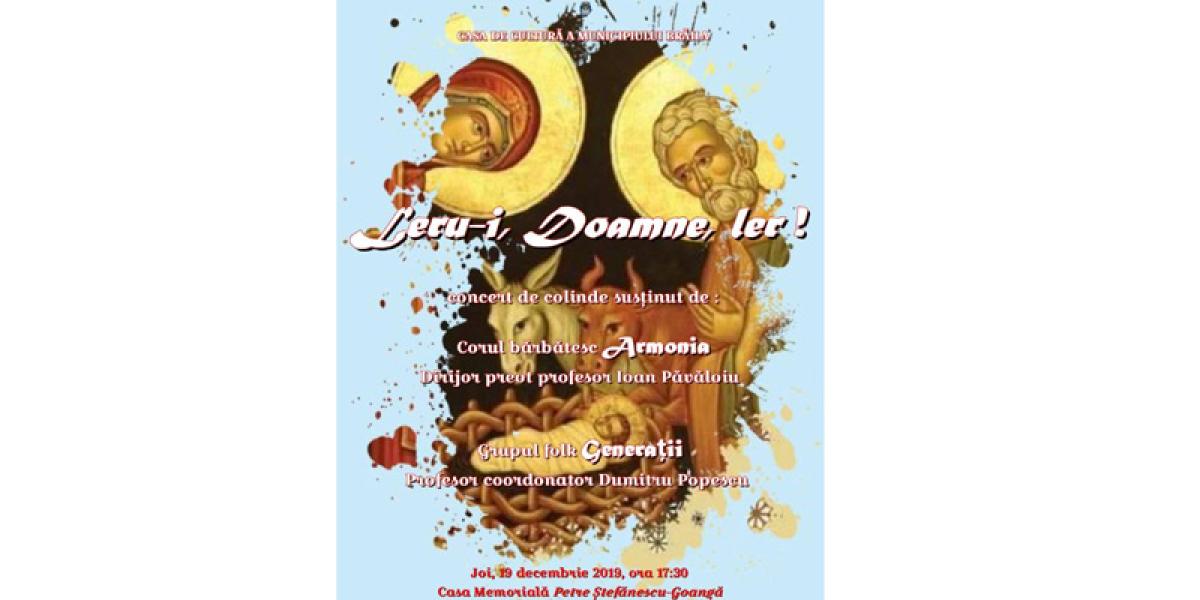 În cadrul manifestării organizată de Casa de Cultură a Municipiului Brăila şi intitulată sugestiv Leru-i, Doamne, ler, Corul bărbătesc Armonia, dirijat de preot profesor Ioan Păvăloiu, va încălzi sufletele celor prezenţi cu colinde tradiţionale româneşti, iar grupul folk Generaţii, condus de profesorul Dumitru Popescu, va susţine un recital de colinde şi cântece de iarnă.