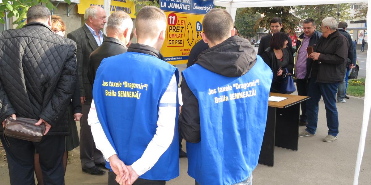 Război total între liberalii brăileni şi primarul Marian Dragomir, după ce PNL-iştii au demarat campania de strângere de semnături pentru eliminarea taxei pentru apa pluvială şi reducerea celei de gunoi. Preşedintele PNL Brăila, Alexandru Dănăilă, a emis, ieri, un comunicat de presă, în care s-a plâns că primarul Brăilei se teme de demersul început de organizaţia pe care o conduce şi face tot posibilul să îi pună piedici. Acesta a atras atenţia că deşi a solicitat autorizaţii de amplasare a unor corturi noi pe Strada Şcolilor, Calea Călăraşilor, Strada Cezar Petrescu, Strada 1 Decembrie, Calea Galaţi, municipalitatea s-a eschivat şi nu le-a acceptat, încercând astfel să obstrucţioneze campania PNL. Mai mult, Dănăilă susţine că Primăria a trimis poliţiştii locali să controleze zonele în care liberalii au acţionat pentru strângerea de semnături.