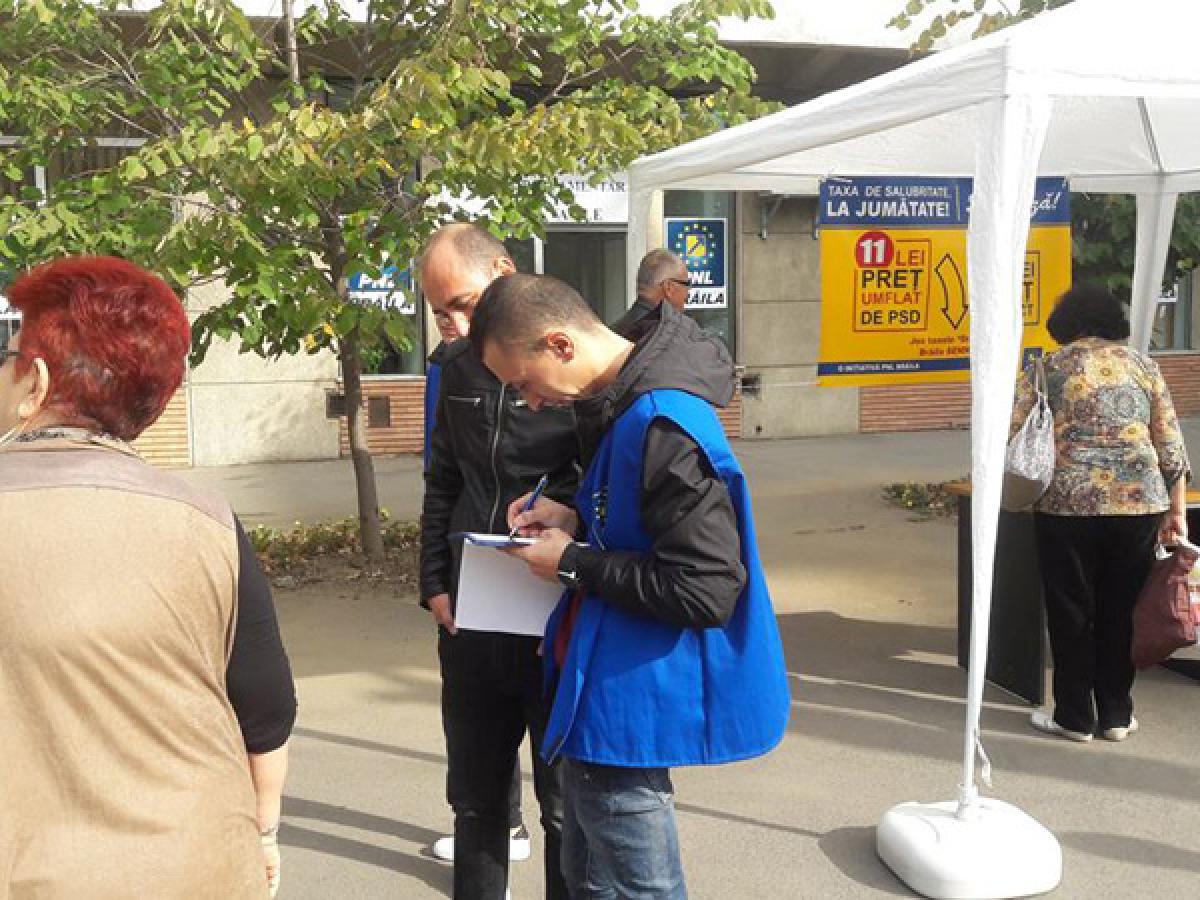 Campania de strângere de semnături, iniţiată de PNL Brăila pe 6 octombrie, pentru eliminarea taxei pe apa meteorică este în plină desfăşurare. Cetăţenii semnează atât la cortul amplasat în faţa sediului de pe Calea Călăraşilor colţ cu strada Tineretului cât şi online. Ieri, erau 2.000 de semnături depuse, iar petiţia online fusese semnată de 243 de persoane.