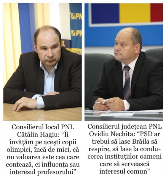 PNL-iştii brăileni "pun tunurile" pe social democraţi ca urmare a scandalurilor şi problemelor apărute la nivelul Inspectoratului Şcolar Judeţean Brăila şi la Spitalul Judeţean. Fostul preşedinte interimar al CJ, consilierul judeţean PNL Ovidiu Nechita a lansat, ieri, un comentariu pentru a sublinia că la conducerea unor instituţii atât de importante precum cele două menţionate mai sus este obligatoriu să ajungă oameni competenţi şi nu personaje susţinute politic. "Asistăm în aceste zile la o nouă formă de batjocorire a brăilenilor, manifestată prin dezinteresul PSD faţă de două subiecte extrem de importante: sănătatea şi educaţia. De fapt, batjocura nu este decât o continuare a politicii pe care PSD a promovat-o ani la rând în judeţul Brăila, prin oameni de tipul Bunea Stancu. Considerăm că practicile de acest gen trebuie să înceteze, iar liderii PSD trebuie să termine cu demagogia şi să recunoască deschis că situaţiile create la Spitalul Judeţean şi la Inspectoratul Şcolar Judeţean li se datorează în totalitate. Este inadmisibil ca două domenii extrem de importante pentru viaţa unui om, pentru soarta unui oraş, educaţia şi sănătatea, să fie târâte în scandaluri ce se consumă în jurul oamenilor pe care PSD i-a impus la conducere, iar liderii acestui partid să nu-şi asume nicio vină", a declarat Nechita.