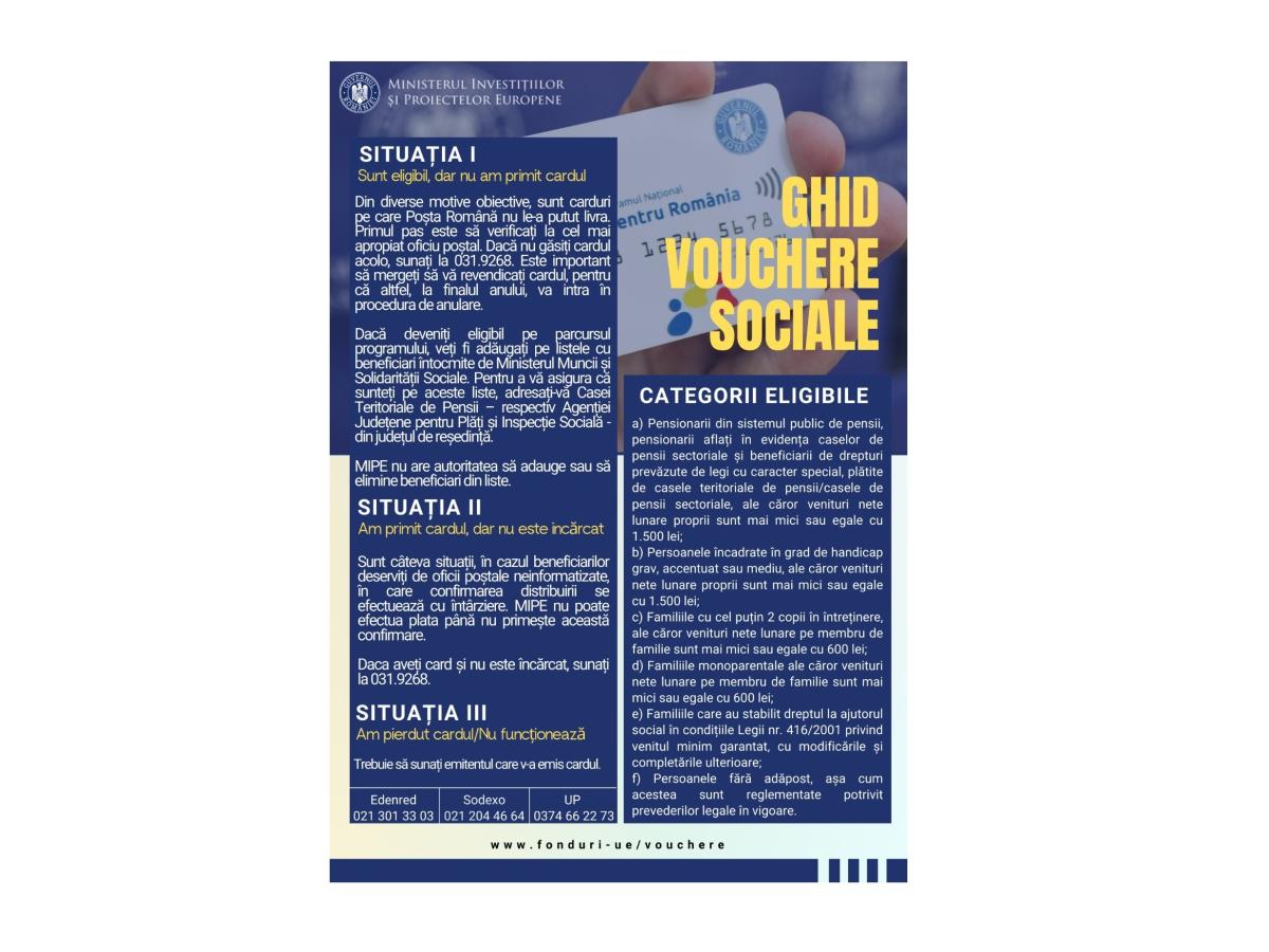 Amintesc faptul că, prin Programul social „Sprijin pentru România”, Guvernul vine în ajutorul celor mai vulnerabile categorii de persoane şi acordă, începând cu luna iunie 2022, acest tip de ajutor sub formă de tichete sociale emise pe suport electronic. Valoarea nominală a tichetului social este de 250 lei şi se acordă o dată la două luni, sumele putând fi utilizate în termen de 12 luni de la data fiecărei alimentări.