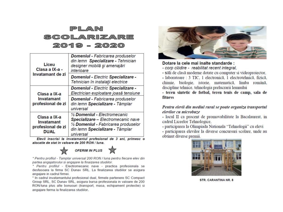 Iar oferta educaţională nu se opreşte aici! Începând cu anul şcolar 2019- 2020, Liceul Tehnologic “Grigore Moisil” va avea şi o clasă de învăţământ profesional dual cu dublă specializare, clasă înfiinţată la cererea agenţilor economici. Este vorba despre specializarea “Tâmplar universal” (14 locuri), organizată la iniţiativa URBANNA şi despre specializarea “Electromecanic nave” (14 locuri), creată la iniţiativa firmei “SC Dunav SRL”.
