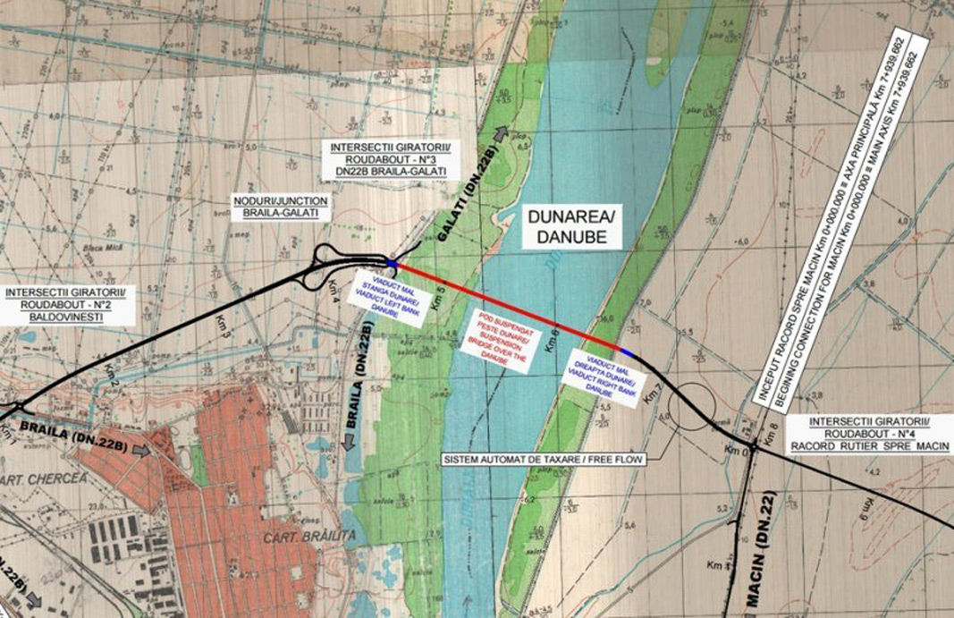 Reamintim că, în prima parte a lunii ianuarie 2018, a fost semnat contractul de proiectare şi execuţie a Podului suspendat peste Dunăre Brăila - Tulcea cu o valoare de 1.995.932.260 lei, fără TVA, adică echivalentul a circa 433 milioane euro.