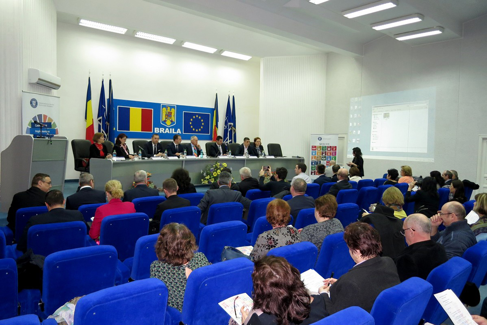 Întâlnire la nivel înalt, ieri, la Brăila cu o serie de invitaţi din zona administrativă a regiunii de Sud-Est a României. Mai exact, Departamentul pentru Dezvoltare Durabilă din cadrul Secretariatului General al Guvernului împreună cu Prefecturile şi Consiliile Judeţene din Regiunea de Dezvoltare Sud-Est a organizat un Seminar Regional intitulat “Împreună pentru dezvoltarea durabilă”, în sala mare a Palatului Administrativ. Pe lângă liderii locali, directori de deconcentrate, reprezentanţi ai mediului de afaceri, ai societăţii civile, ai unor instituţii publice centrale şi locale, la întâlnire au mai participat şi o parte dintre şefii administraţiei din judeţele vecine, printre care şi preşedintele CJ Galaţi, Costel Fotea. Scopul întâlnirii, după cum a precizat consilierul de stat şi coordonatorul Departamentului pentru Dezvoltare Durabilă, László Borbély (de altfel, cel care a prezidat evenimentul), l-a constituit punerea de acord a autorităţilor locale în privinţa implementării unei viitoare strategii de dezvoltare durabilă. Practic, în momentul de faţă departamentul condus de Borbély lucrează la revizuirea Strategiei Naţionale pentru Dezvoltare Durabilă a României ce datează din 2008, iar în momentul în care documentul va fi gata şi va trece de votul Guvernului României, o parte din implementarea acestuia va cădea pe umerii autorităţilor locale din fiecare regiune a ţării.