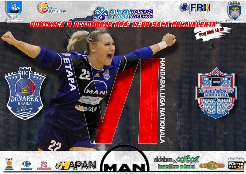 Duminică, 9 octombrie, HC Dunărea, locul al 8-lea, cu 7 puncte, va juca în Sala Polivalentă, de la ora 17.00, cu CSM Galați, “lanterna roșie” a Ligii Florilor.