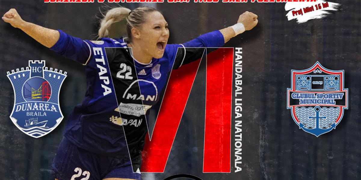* HC Dunărea va juca duminică, 9 octombrie, în Polivalentă, cu CSM Galați * meciul începe la ora 17.00 *partida va putea fi urmărită live și pe canalul de YouTube al clubului brăilean