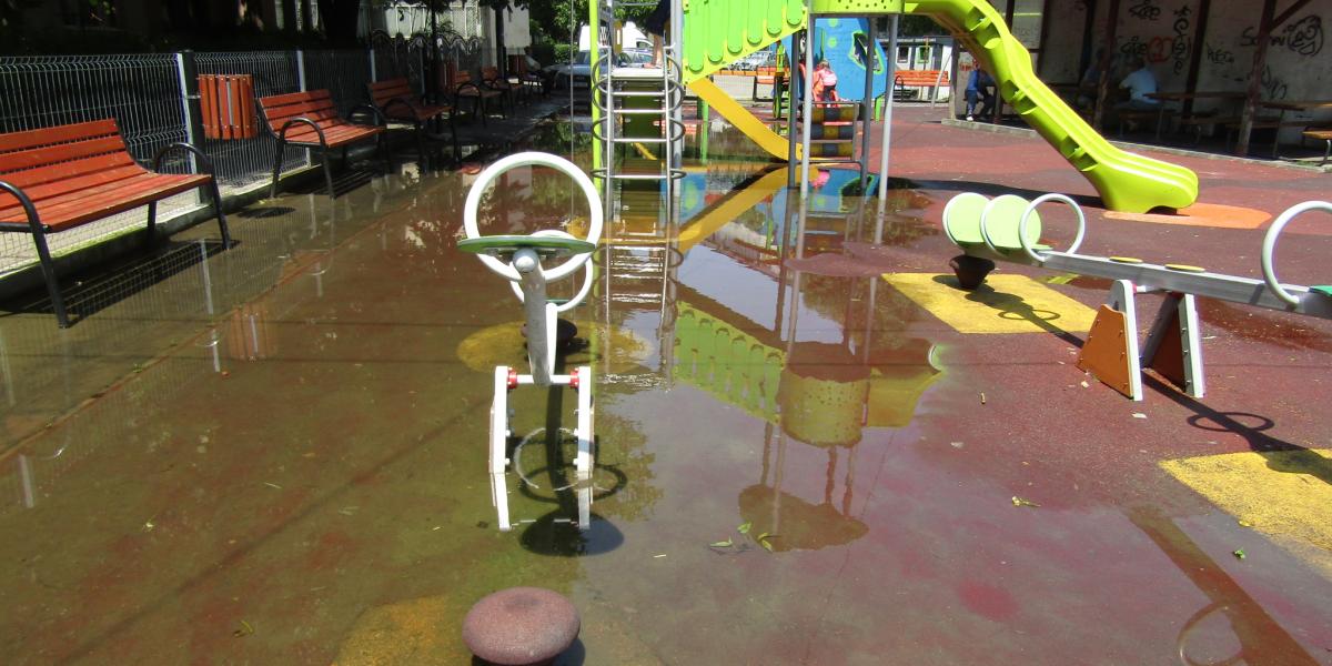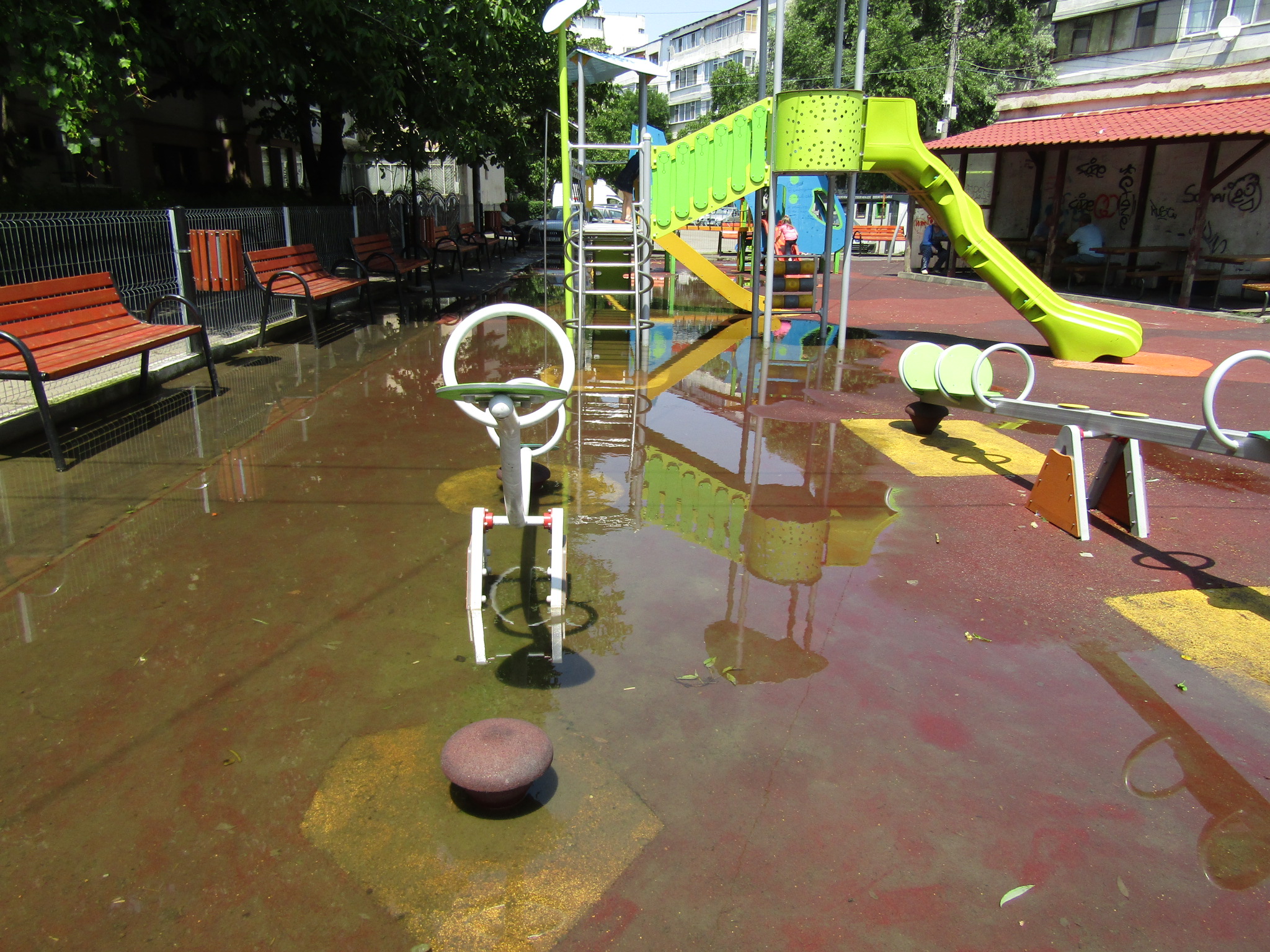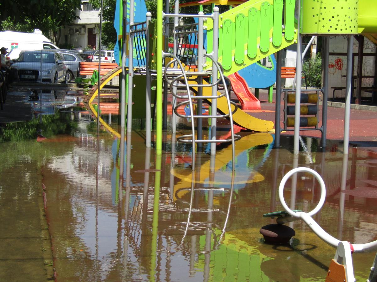 Însă cel mai mare inconvenient este faptul că, după fiecare ploaie consistentă, pe aproape jumătate din parc apa este mai bine de-o palmă, iar copiii dornici de joacă trec prin această băltoacă și ajung acasă uzi fleaşcă, după cum ne-a declarat, supărată, o mămică. ”Iarna se formează aici un mic patinoar, iar beleaua asta cu apa se întâmplă încă de la inaugurarea acestui loc de joacă. Plus că atunci când vine toamna apa care băltește este foarte rece şi periculoasă pentru sănătatea copiilor nesupravegheaţi“, ne-a mai spus o locatară a unui bloc învecinat.