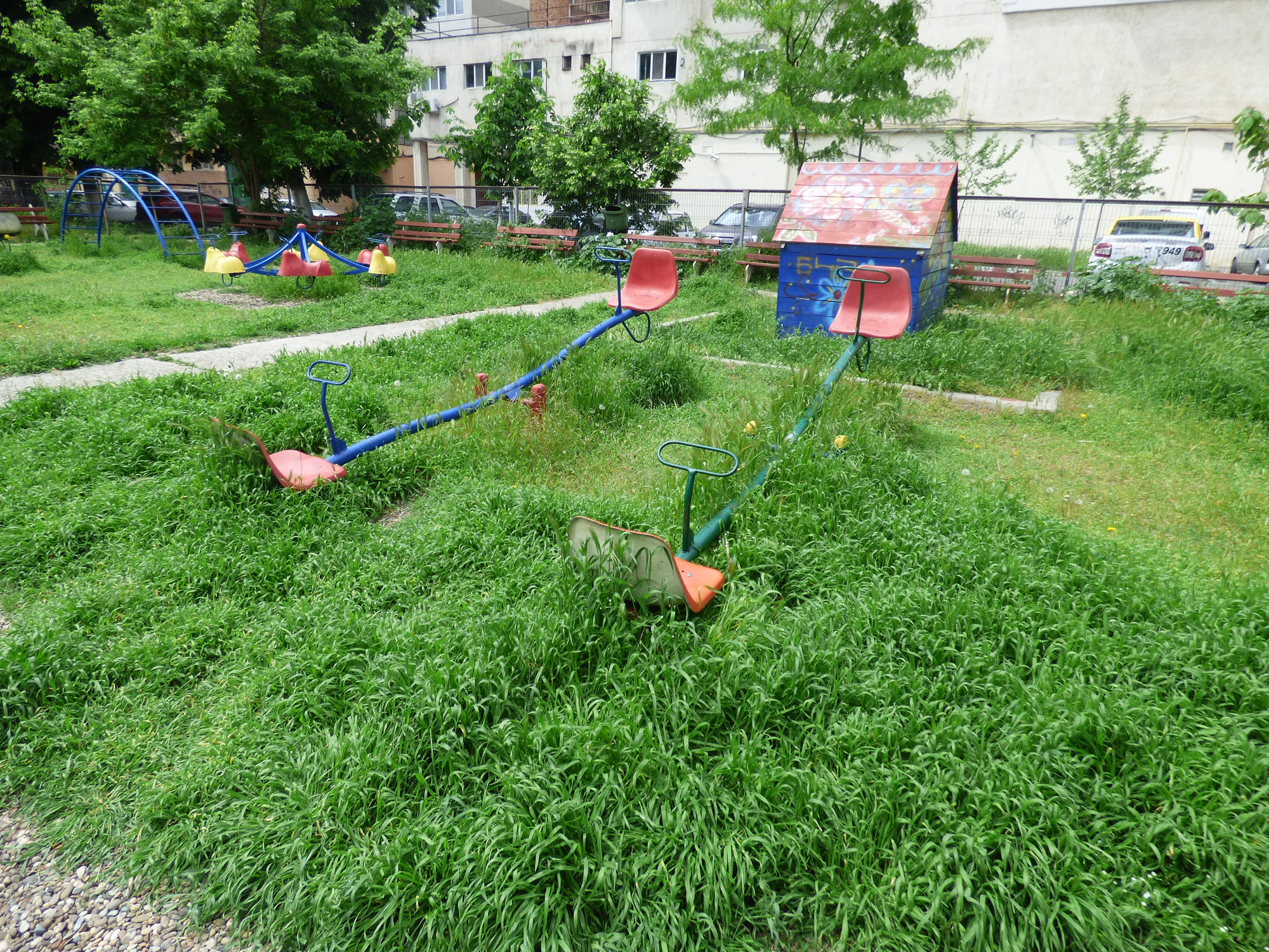 Realizat cu cheltuieli mari din banii Primăriei şi cu eforturile SUPAGL, modernul loc de joacă pentru copii de la Romarta Nouă a ajuns nu doar un perimetru preferat de găştile venite aici să bea, să fumeze, să spargă seminţe şi, din când în când, să incendieze coşurile de gunoi, dar şi pentru scoaterea la plimbare a câinilor de apartament, cu mizeria de rigoare lăsată în urmă. Asociaţia de Proprietari nr. 18 a încercat fără succes să impună aici un comportament civilizat! Recent, persoane inconştiente au devastat un leagăn şi au furat din părţile metalice şi din lemn ale împrejmuirii. Şi, ca şi cum nu erau suficiente aceste lucruri, acum locul de joacă este efectiv sufocat de bălării în care pot apărea căpuşele. Ţânţarii, şerpii şi şobolani găsesc şi ei condiţii prielnice de dezvoltare, în detrimentul siguranţei şi sănătăţii copiilor veniţi aici. Ce trebuie făcut se ştie…