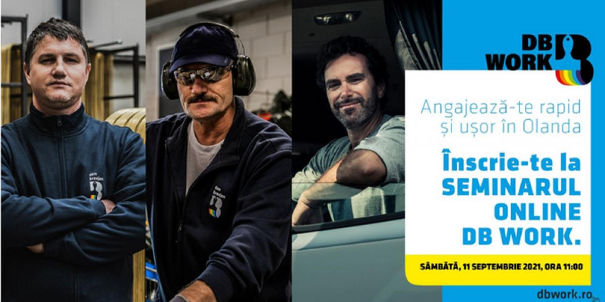 Îți dorești să pleci în afara țării, însă toate anunțurile pentru locuri de muncă în străinătate nu te-au convins? Ei bine, tocmai din acest motiv, echipa DB Work organizează un seminar online „Află cum să te angajezi în Olanda”, sâmbătă, 11 septembrie 2021, la ora 11:00, live pe internet.