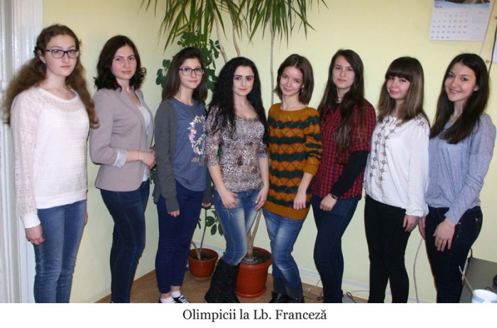 Lotul pentru Olimpiada de franceză este format din opt eleve. Ionescu Elena Alexa (clasa a VII-a) participă pentru prima dată la faza naţională a concursului şcolar, în timp ce Păun Irina Nicoleta (clasa a VIII-a) a câştigat anul trecut premiul III la aceeaşi materie. Ambele fete provin de la Şcoala Gimnazială "Al. I. Cuza" şi s-au pregătit la clasă cu prof. Daniela Petre. Tache Monica Gabriela (clasa a XI-a) este elevă a Liceului Teoretic "Panait Cerna", a obţinut premiul I anul trecut la etapa judeţeană, fără calificare însă la naţională, iar profesoara cu care se pregăteşte la clasă este Teodorina Nazâru. Nechita Andreea (clasa a IX-a), Epureanu Ana Maria (clasa a X-a) şi Mirea Mădălina Diana (clasa a XII-a) provin de la Colegiul Naţional "Gh. M. Murgoci". Pentru Andreea şi Mădălina va fi prima dată când vor participa la faza naţională, în timp ce Ana Maria a obţinut în ultimii doi ani menţiune. Anul trecut, cea din urmă a obţinut nivelul B2 la examenul "DELF". La clasă sunt pregătite de prof. Rosana Ivan, Lefter Mihai şi Ingrid Iavorschi. Lotul este completat de două eleve ale Colegiului Naţional "N. Bălcescu". Pârlea Andreea Mădălina (clasa a X-a intensiv) a mai participat şi anul trecut la faza naţională, dar şi la un concurs internaţional de engleză în Marea Britanie, unde a obţinut menţiune. Nici Bocu Raluca Nicoleta (clasa a XII-a intensiv) nu se află la prima participare la o etapă naţională a olimpiadelor şcolare, însă anul acesta îşi doreşte să obţină un premiu. Profesorii pregătitori de la clasă sunt Steluţa Drâmbu şi Mircia Spiridon.