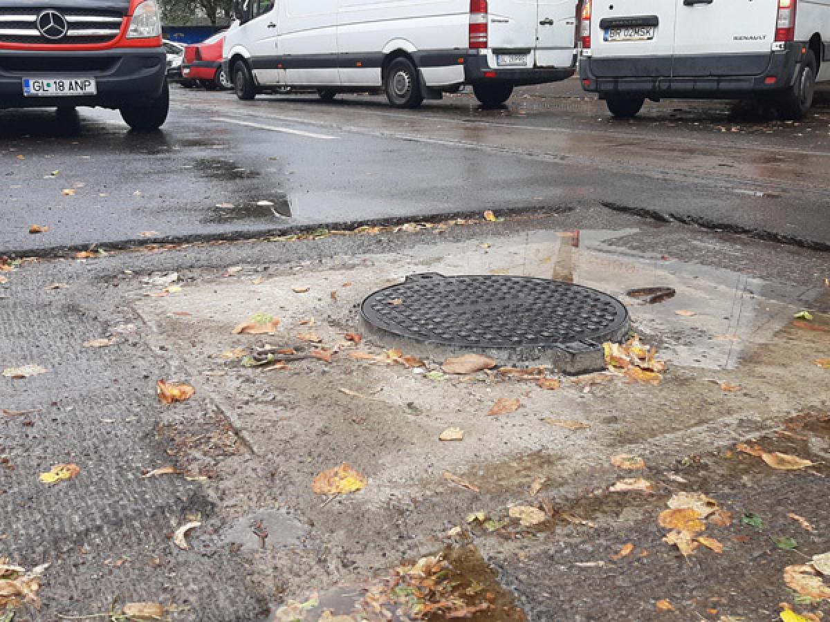 Este vorba despre o canalizare de pe strada Octav Doicescu, din cartierul Progresul, în faţa blocului E1, la care s-a lucrat la începutul săptămânii trecute şi care a fost, se pare, abandonată. Aşa cum se poate observa în fotografiile trimise, asfaltul din jurul canalizării a fost decupat pe o suprafaţă considerabilă, iar înălţimea capacului, de asemenea, nu poate fi neglijată.