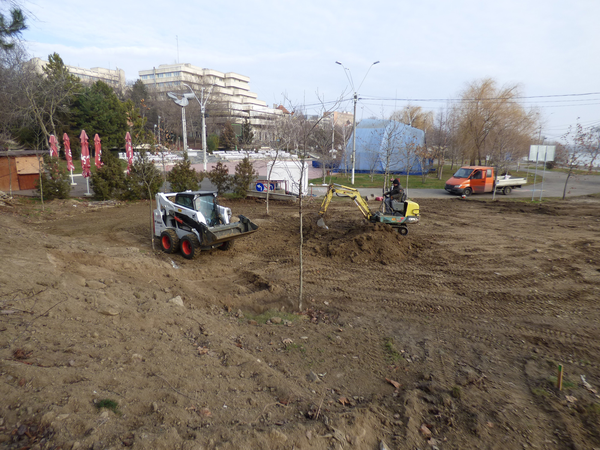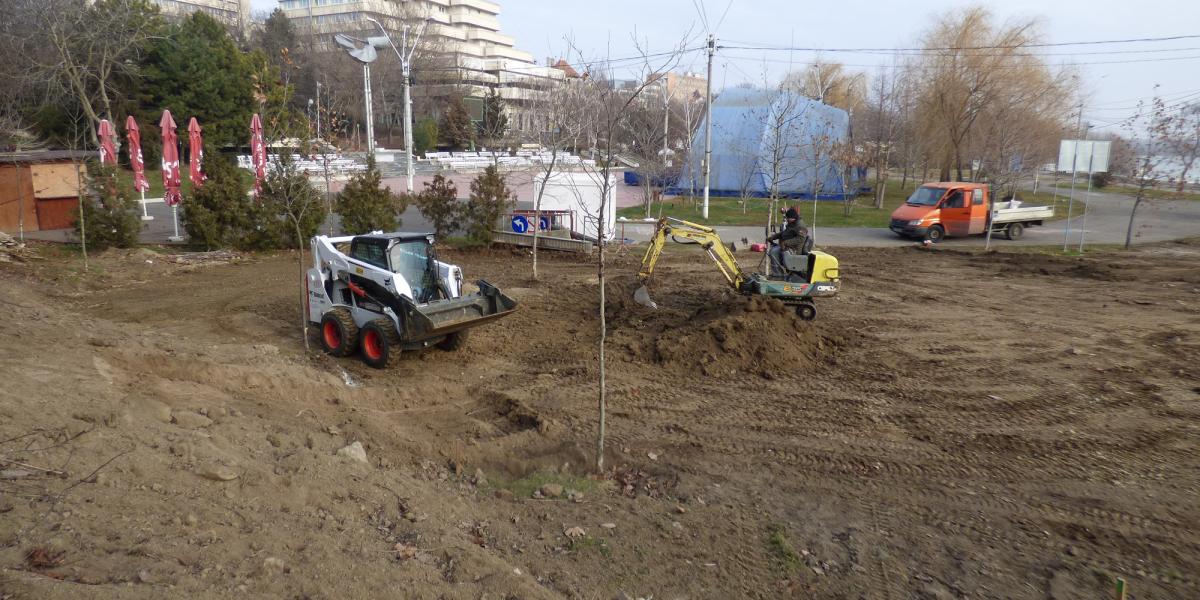 • constructorii au profitat de iarna blândă şi au demarat lucrările la această investiţie în valoare de 1,23 milioane de lei • sunt speranţe ca până la 1 Iunie, de Ziua Copilului, parcul să fie gata