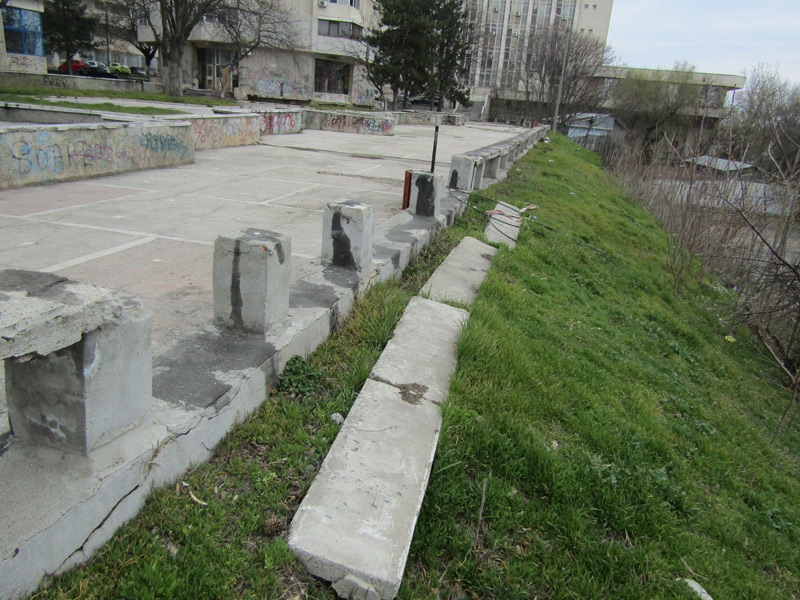 • parapetul de beton reparat în urmă cu ceva vreme a început să se dezintegreze, atât din cauza lucrărilor prost făcute cât și a actelor de vandalism la care se dedau găștile ce se strîng noaptea în zona blocurilor-hexagoane exasperându-i pe locatari cu comportamentul lor