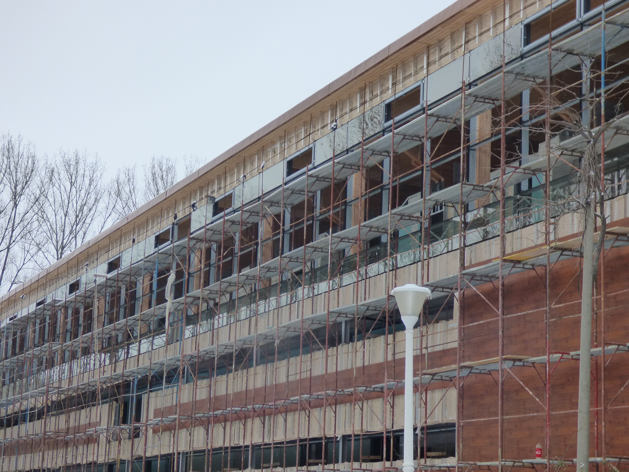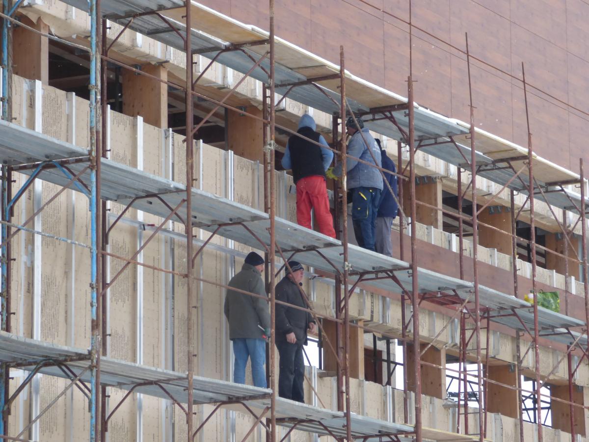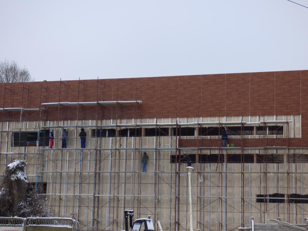 Echipele de constructori mențin ritmul lucrărilor inclusiv pe timp de iarnă, neținând cont de vremea rea. Despre stadiile fizice la care s-a ajuns cu lucrările aflăm de la șeful de șantier, ing. Bogdan Vrînceanu: „După cum se vede, meseriașii sunt angrenați la execuția placărilor exterioare, realizate în proporție de 70%. În paralel, se pun geamurile mari, la pereții - cortină, dar și pe latura dinspre Parcul Monument, unde sunt geamuri vitrate. În altă ordine de idei, se montează tâmplăria exterioară. Compartimentările din rigips și tencuielile sunt gata pe cei 3.000 mp. Șapele sunt turnate, iar din luna decembrie am finalizat lucrările de la tribune, adică rețelele de apă-canal, termice și electrice, inclusiv, lucru deosebit, conductele pentru încălzirea prin pardoseală". De asemenea, sursa citată a mai precizat că au sosit centralele termice, fiecare având câte 120 Kw, iar săptămâna viitoare vor fi montate în subsolul tehnic. "De precizat că lucrăm și la sistemul de ventilație, dar și la sprinklerele pentru stingerea incendiilor. Ca lucrări ce le vom ataca în perioada următoare, este vorba de placările cu gresie și faianță asupra cărora numai putem interveni cu diverse scule, nacele,e tc pentru a le menține intacte. Cât privește meseriașii, acum sunt 25 și vom ajunge la 38. Nu renunțăm la dulgheri și fierari în sezonul rece, dându-le alte lucrări, iar imediat ce vremea se va încălzi și temperaturile vor fi constante, trecem masiv la tencuieli interioare și finisaje", a mai adăugat sursa citată.