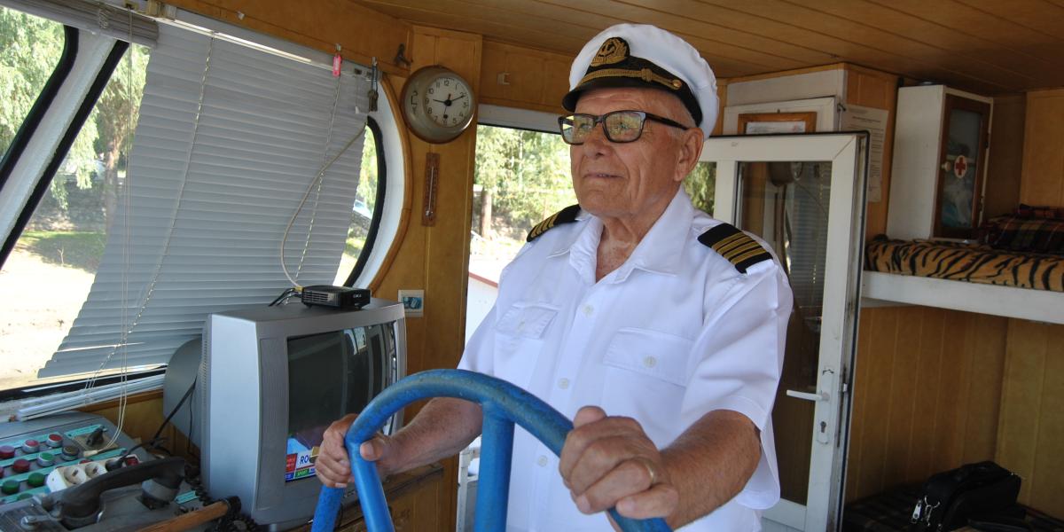 S-a născut pe șlep, a trăit pe șlep și acum, la venerabila vârstă de 85 de ani, se află tot la cârma unui vas fluvial. Și nu oricare vas ci chiar nava de pasageri ”Lacu Sărat”, a Primăriei Brăila, care face regulat curse de agrement pe fluviu, cu zeci de persoane la bord.