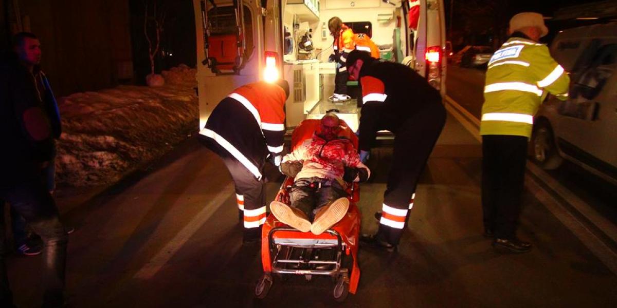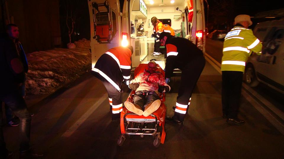 * în această seară, un bărbat a fost descoperit plin de sânge, pe strada Griviţei, fiind urme vizibile de atac violent * iniţial s-a crezut că victima însângerată a fost lovită de maşină, dar adevărul era altul * doi bărbaţi, unul de 40 de ani şi altul de 60, au băut o sticlă de spirt, apoi s-au încăierat pentru că vroiau aceeași femeie