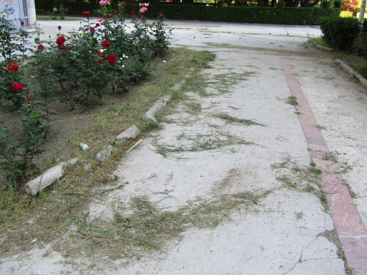 Diferenţe mari de timp şi mod de a se lucra, au fost şi în zona Romarta Nouă, unde s-au curăţat de bălării doar trandafirii dinspre fântână. Spre sediul ANAF (o zonă urgisită şi pe timpul iernii, când publicul înoată prin zăpadă), buruienile ajunseseră să sufoce trandafirii, iar peisagiştii au lăsat în urmă iarbă tăiată şi pământ (că doar dânşii nu au mături adecvate în dotare).