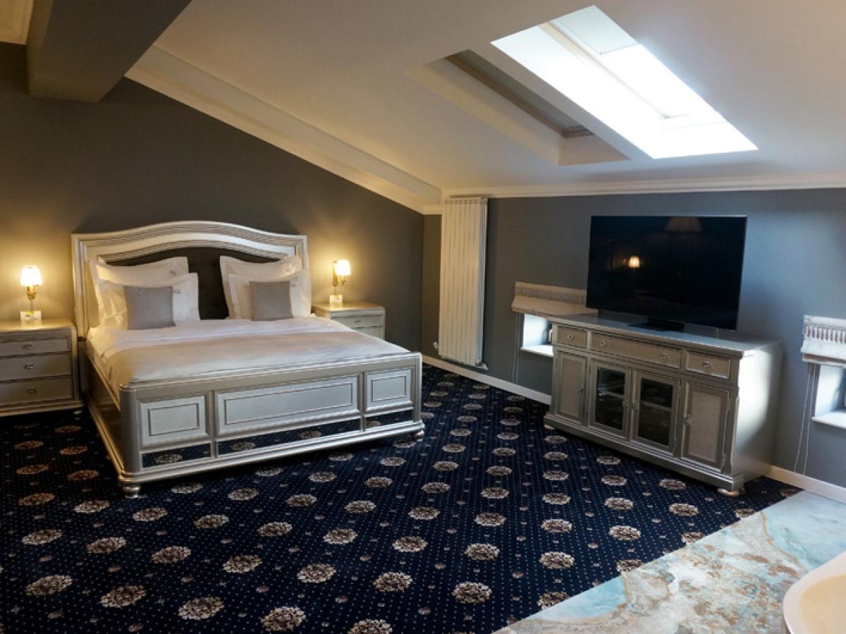 Florin Cîrligea ne-a mărturisit că, dacă pentru restaurarea elementelor de arhitectură exterioare s-a bazat pe specialiști și pe cei mai buni meseriași pe care i-a putut găsi, în ceea ce privește amenajarea interioară a fiecărui apartament nu a colaborat cu vreun designer specializat și a gândit totul singur, de la A la Z. ”Eu am ales tot, de la mobilier până la culoarea pereților care par a fi tapetați, dar nu e tapet, e var de cea mai bună calitate. Inspirația a venit din experiențele avute în hotelurile din străinătate unde am fost cazat. Am vrut să aduc aceste standarde înalte și la Brăila. La trei lucruri nu am făcut rabat: am vrut spații mari, de minim 30 metri pătrați, cadă mare în fiecare apartament, și un loc de fumat amenajat decent, în curtea hotelului, ca să nu stea clienții în frig să fumeze. Ce a ieșit, se vede... Eu zic că un hotel la astfel de standarde nu se află nu doar în Brăila ci nici în zona asta de țară. Iar de clienți, nu-mi fac griji, or să fie suficienți. Brăila are un potențial foarte mare, chiar dacă nu toată lumea realizează acest lucru”, ne-a declarat Florin Cîrligea. Apropo de experiențele avute în străinătate, acesta a ținut neapărat ca pe colțul clădirii, în firida deja existentă, să fie amplasată o statuie a Fecioarei Maria, așa cum au majoritatea clădirilor de acest gen din Italia.
