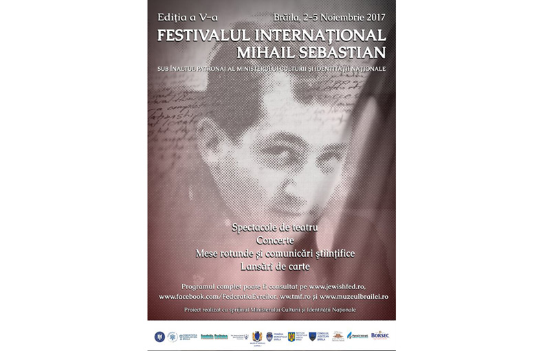 În perioada 2-5 noiembrie 2017, la Brăila va avea loc cea de a V-a ediţie a Festivalului Internaţional “Mihail Sebastian”. Eveniment organizat sub înaltul patronaj al Ministerului Culturii şi Identităţii Naţionale, festivalul se va desfăşura la Teatrul “Maria Filotti”, la Muzeul Brăilei “Carol I”, la Biblioteca Judeţeană “Panait Istrati” şi Templul Coral Brăila şi va cuprinde spectacole de teatru, concerte, mese rotunde şi comunicări ştiinţifice, lansări de carte.