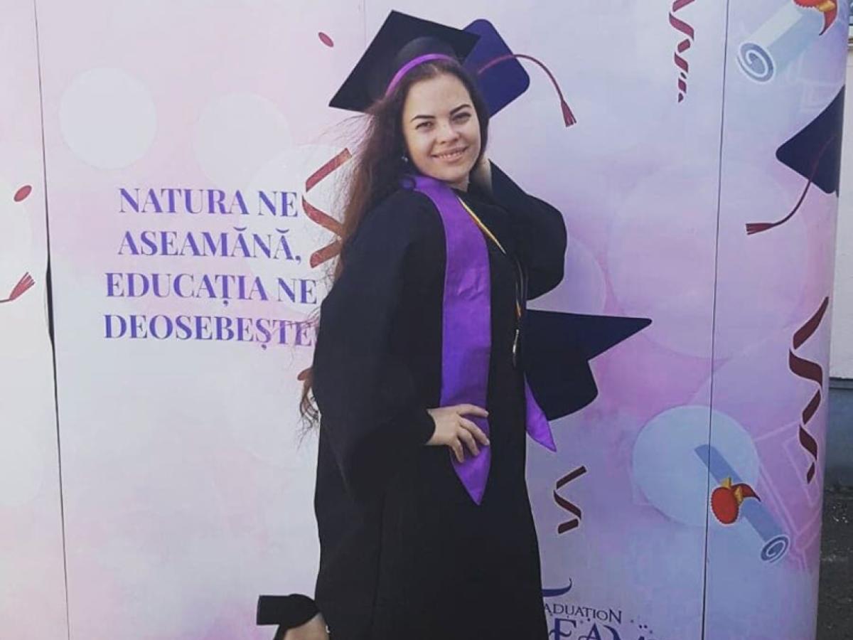 Tânăra a făcut performanţă pe parcursul liceului la concursurile şi olimpiadele la care a participat. S-a înscris la Litere la “Dunărea de Jos” Galaţi, specializarea română-franceză, fiind prima admisă.