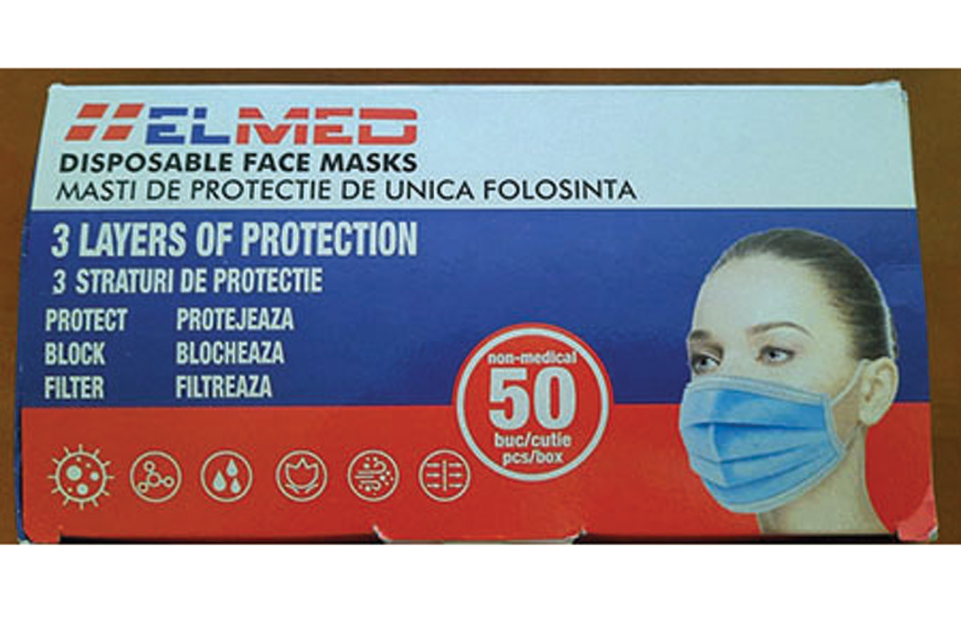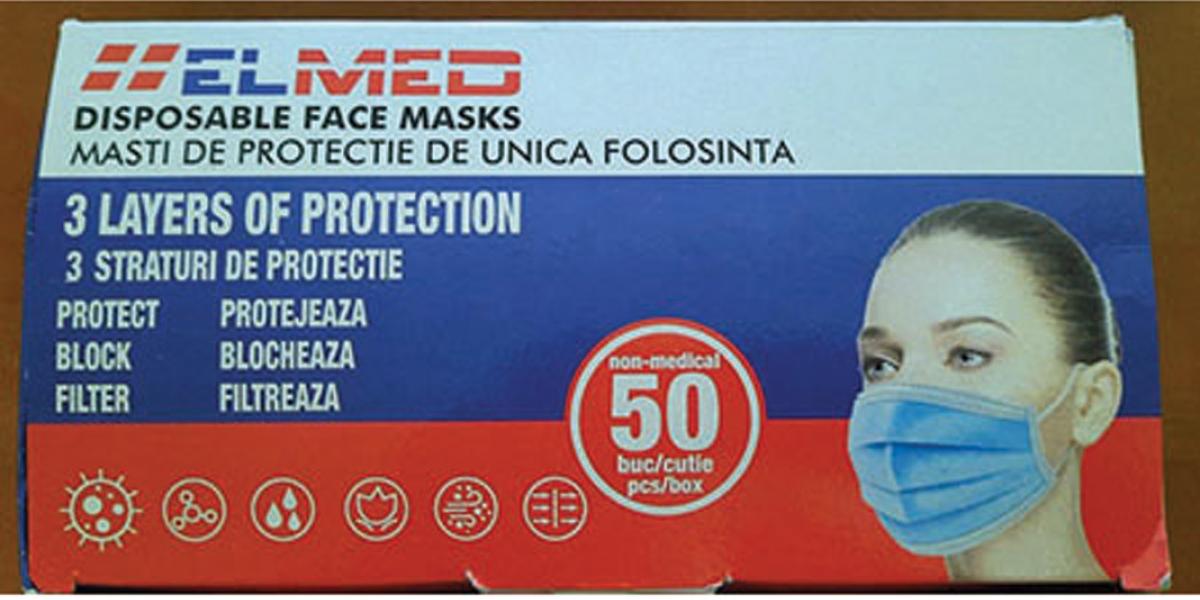 România a transmis, în prima săptămână a lunii martie, o notificare, după ce a identificat o mască cel puțin dubioasă, marca ELMED și cu un marcaj CE aplicat, dar care nu era certificată ca echipament de protecție. "De asemenea, etichetarea este confuză deoarece pe cutia de carton masca este declarată "nemedicală", în timp ce, în același timp, este menționat standardul EN 14683: 2019. Produsul nu respectă Regulamentul privind echipamentele de protecție și standardul european EN 149", se precizează în comunicatul InfoCons.
