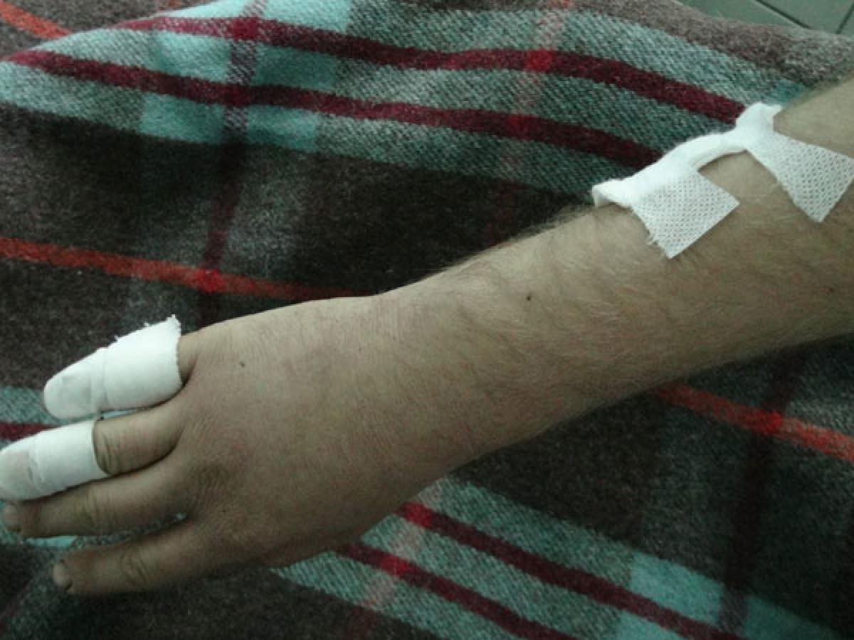 Cel care ne-a sesizat cu privire la măcelul din club este brăileanul Ionel Vlad, fost boxer de performanţă, printre victime fiind chiar nepotul său, de 23 de ani, Marian, pe care l-a crescut ca pe propriul fiul. Bărbatul ne-a spus că atacatorii au vrut practic să îl omoare pe băiat provocându-i tăieturi grave la mâini, dar şi mai grav, la cap. Cel atacat, aflat acum pe patul de spital, a spus că nu îi cunoştea pe atacatori, decât din vedere, fără a avea vreodată ceva certuri sau altercaţii cu ei. Nu ştie de ce s-au năpustit asupra lui şi altor trei persoane, cert este că pe el l-au lăsat într-o baltă de sânge. Bunicul tânărului s-a arătat profund marcat de ce i s-a întâmplat nepotului său pe care-l ştie ca fiind un băiat cuminte, care munceşte, urmează cursuri la un liceu, şi nu a creat vreodată probleme. S-a temut că bătaia soră cu moartea i-ar fi putut aduce sfârşitul, la o vârstă mult prea fragedă şi fără un motiv clar. “Sâmbătă seara s-a produs totul, la club acolo pe Faleză, sub scări. A fost aproape o crimă, băiatul era acolo cu prietena, viitoarea soţie. Era gata să îmi omoare copilul, că este ca şi băiatul meu. Au intrat 2-3 persoane, i-au dat un pumn şi i-au spart gura, apoi au venit alţi 5-6 bărbaţi cu săbii, topoare. Nu îi cunoştea, nu ştia ce au cu el. L-au tăiat cu săbiile să îl omoare. Atacatorii aştia stau aici, în Centru Vechi, pe o stradă de pe lângă Spitalul TBC. L-au tăiat în aşa hal că îi atârna carnea la o mână. Am zis că rămâne fără ea. Poliţiştii nu au venit imediat după apelul la 112. Am sunat la salvare, să îl ducă la spital, avea şi tăieturi la cap. L-au dus la Unitatea de Primiri Urgenţe, avea hainele pline de sânge, l-au operat, putea muri dacă nu se intervenea imediat. Dar medicii l-au salvat. Deci au vrut să îmi omoare băiatul, i-au crăpat capul, cum pot să iert aşa ceva … şi poliţia nu face nimic”, a spus revoltat Ionel Vlad. Bărbatul ne-a mai povestit că nepotul său a stat internat mai bine de 24 de ore la Terapie în cadrul Spitalului Judeţean Brăila, abia ieri fiind dus la salon – Secţia Chirurgie, în cadrul fostului Spital nr. 3, din cartier Hipodrom. Acolo l-au şi găsit redactorii noştri pe Marian Vlad şi au stat de vorbă cu el.
