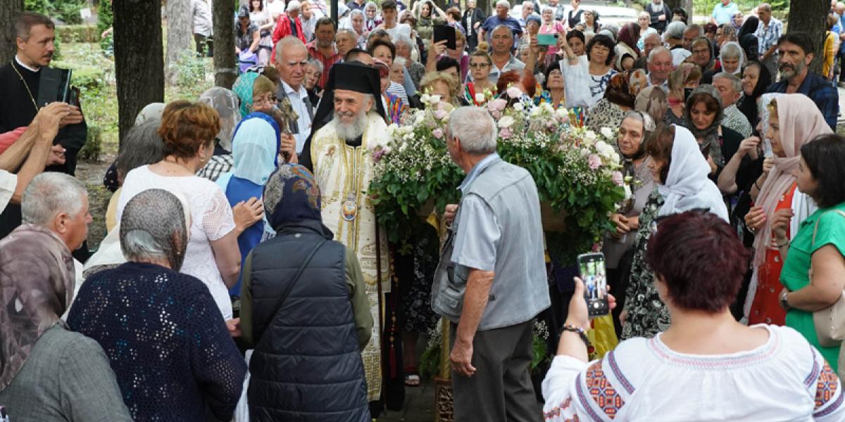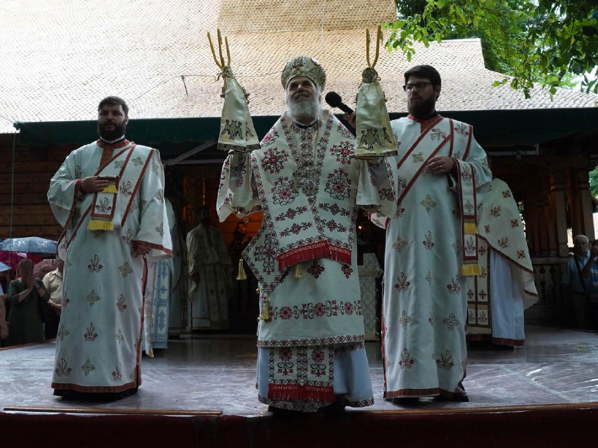 După vizita la căminul de bătrâni, ierarhul a sosit în mijlocul credincioșilor și a oficiat Sfânta Liturghie pe un podium amenajat lângă biserica de lemn a mănăstirii, înconjurat de un sobor de preoți și diaconi. Au fost prezenți numeroși pelerini sosiți la sărbătoarea Sfântului Mare Mucenic și Tămăduitor Pantelimon, persoane aflate la tratament, oficialități, cadre medicale, precum și monahi și monahii din mănăstirile Arhiepiscopiei Dunării de Jos. La slujba de hram a participat și un grup de tineri privați temporar de libertate, de la Penitenciarul Tichilești, împreună cu preotul capelan al centrului de detenție.