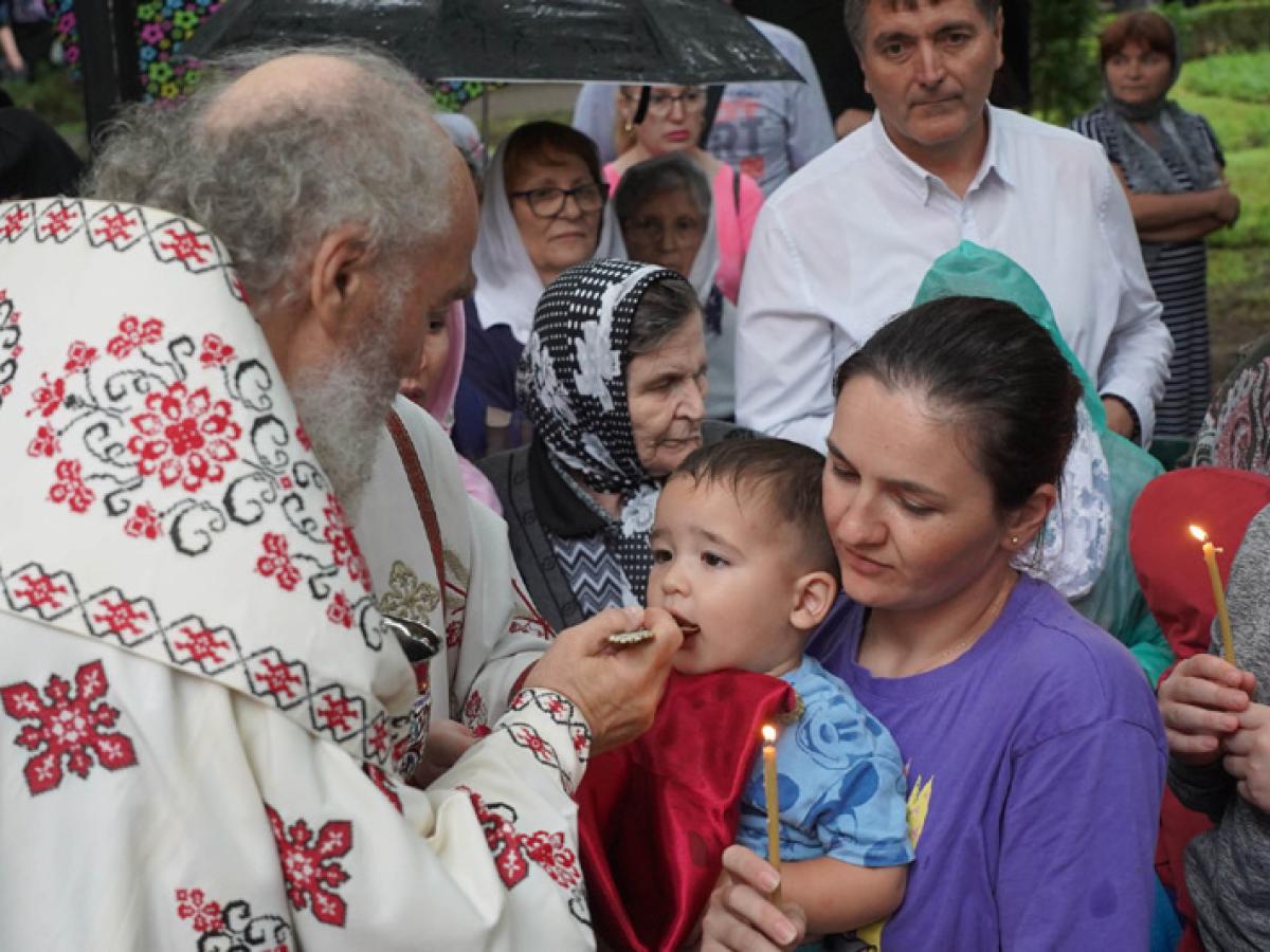În cadrul slujbei de la „Sf. Pantelimon”, au fost rostite rugăciuni de mulțumire pentru binefacerile lui Dumnezeu revărsate asupra slujitorilor, monahiilor și credincioșilor în cei 27 de ani care s-au împlinit de la sfințirea mănăstirii, precum și rugăciuni de mulțumire pentru ploaia binecuvântată revărsată asupra pământului, aducătoare de rod bun. Iar la momentul liturgic cuvenit, mai mulți copii și credincioși au fost împărtășiți cu Sfintele Taine.