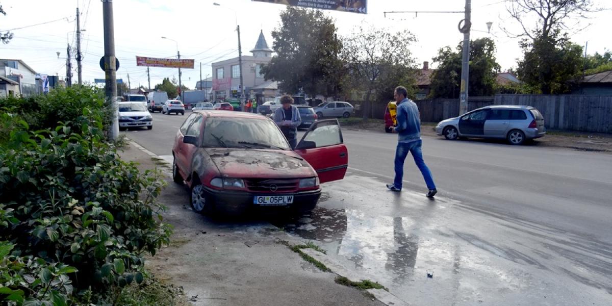 * azi-dimineaţă, un autotursim marca Opel, cu număr de Galaţi, s-a aprins, cel mai probabil pe fondul unui scurtcircuit * pompierii au stins flăcările care i-au cam pus pe fugă pe cei aflaţi în zonă