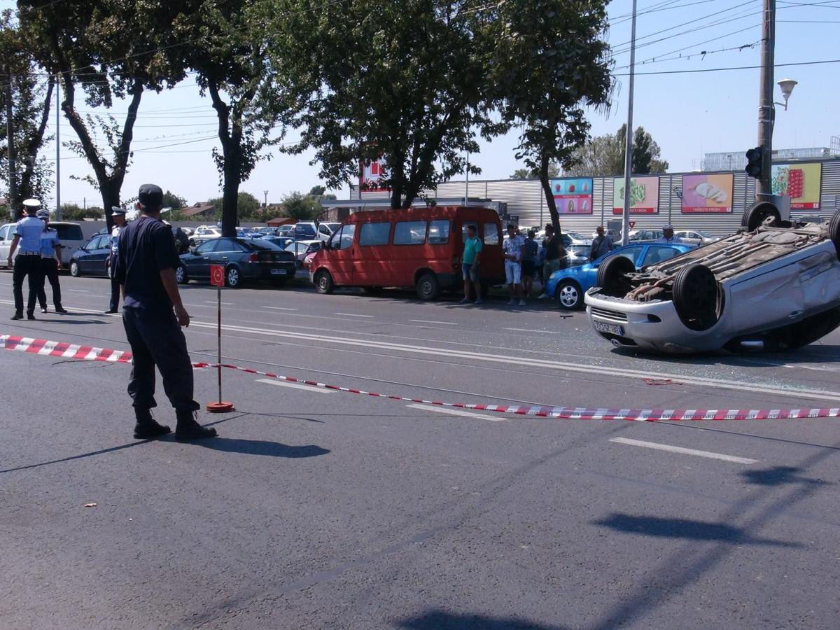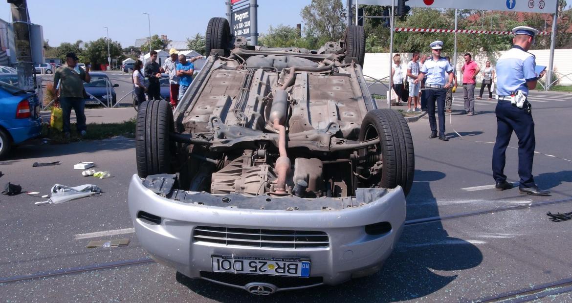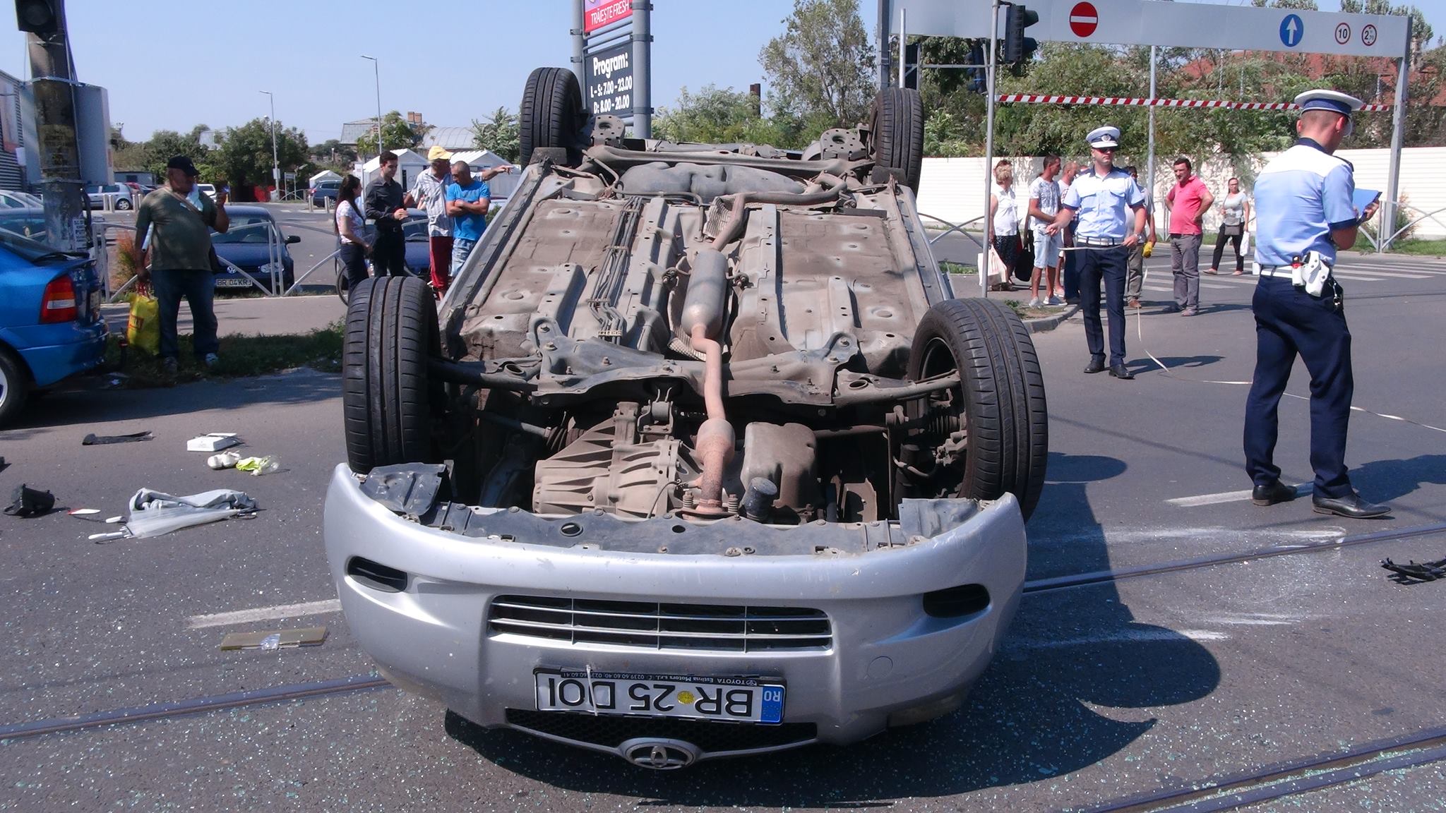 Ieri, conducătoarea auto, însărcinată în 8 luni, nu a acordat prioritate la ieşirea din parcarea Kaufland-ului de pe Dorobanţi şi s-a tamponat violent cu un autoturism “Toyota”. Acesta era condus regulamentar pe Dorobanţi, dinspre strada Gării spre str. 1 Decembrie, de o femeie de 51 de ani. În urma impactului, autoturismul “Toyota” a fost răsturnat. Cea aflată la volan, care purta centura de siguranţă, a scăpat doar cu o sperietură.