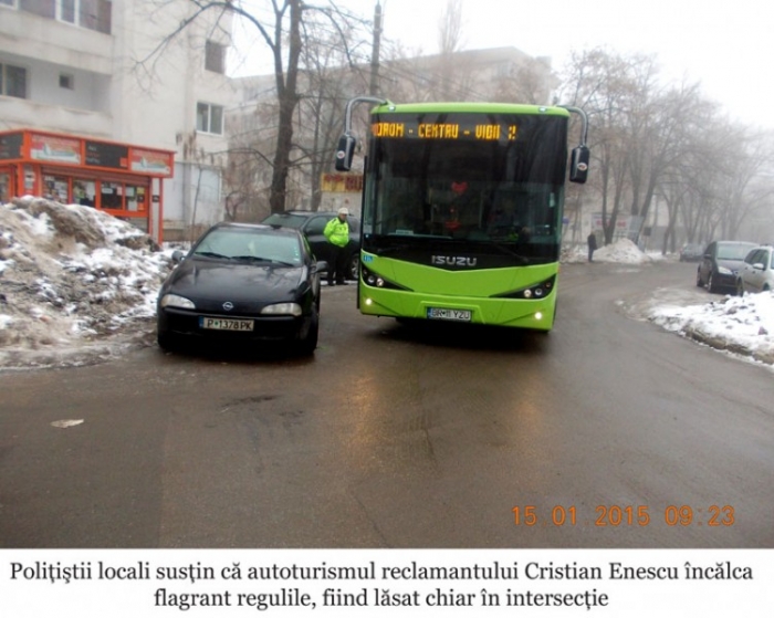 În replică, reprezentanţii Poliţiei Locale spun că, dintre toate autoturismele parcate în zona respectivă, a lui Cristian Enescu încălca de-a dreptul flagrant regulile. "Maşina respectivului şofer era lăsată chiar în mijlocul intersecţiei, încurcând circulaţia autobuzelor şi a celorlalte autovehicule. Înţelegem că în această perioadă există o problemă cu locurile de parcare, din cauza mormanelor de zăpadă, însă nu putem să nu luăm măsuri împotriva celor care îşi lasă maşinile chiar în mijlocul unor intersecţii, la doi paşi de o staţie de autobuz. În plus, şoferul în cauză a avut o atitudine de-a dreptul ofensatoare, dând telefon la dispeceratul Poliţiei Locale şi adresându-le injurii agenţilor cu care a stat de vorbă. Ar fi putut fi amendat şi din această cauză", ne-a declarat Traian Jipa, directorul Poliţiei Locale.