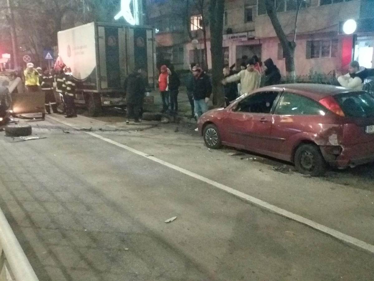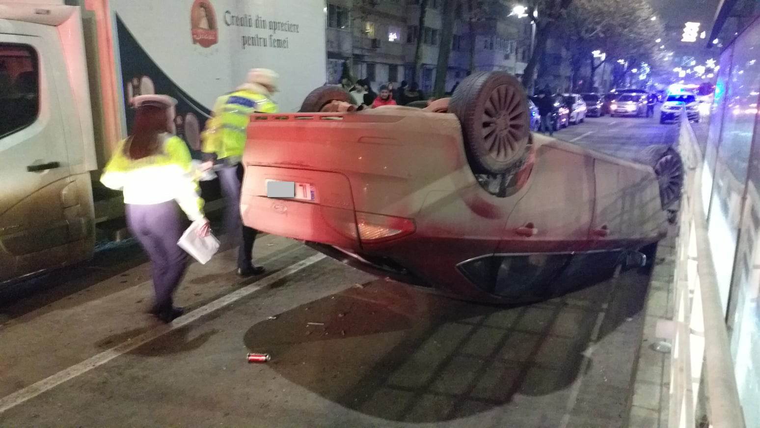 ”În aceasta seară, în jurul orei 21:00, polițisti din cadrul Biroului Rutier au fost sesizați prin apel 112 cu privire la faptul că pe Bulevardul Dorobanților, din municipiu, ar fi avut loc un accident rutier. Polițiștii s-au deplasat la fața locului și din primele date, se pare că un tânăr în vârstă de 25 de ani, din Brăila, în timp ce conducea un autoturism, pe Bulevardul Dorobanților, dinspre Barieră Călărașilor către strada Tineretului, ar fi pierdut controlul direcției volanului, ar fi lovit refugiul de tramvai și s-a răsturnat, avariind 5 autovehicule ce se aflau parcate pe partea dreaptă a sensului său de deplasare. În urma evenimentului a rezultat vătămarea corporală a șoferului, fiind transportat la spital pentru acordarea de îngrijiri medicale. Acesta a fost testat cu aparatul etilotest rezultatul fiind negativ. În cauză a fost întocmit dosar penal și sunt continuate cercetările sub aspectul săvârșirii infracțiunii de vătămare corporală din culpă”, a transmis Poliția.