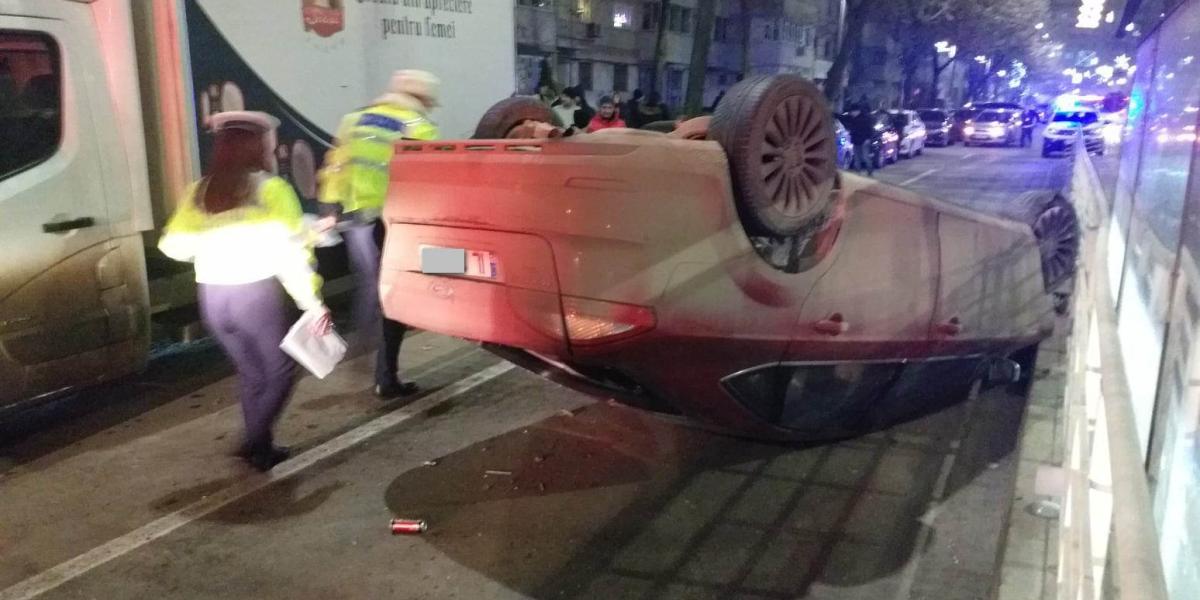Un autoturism Ford cu număr de Ialomița s-a răsturnat, joi seară, pe bulevardul Dorobanți, după ce s-a lovit de refugiul stației de tramvai de la intersecția cu strada Tineretului, a acroșat câteva autoturisme parcate și s-a izbit de o dubă parcat, de asemenea, pe banda întâi de mers, spre strada Școlilor. Șoferul a suferit vătămări corporale și a fost transportat la spital. În autoturismul răsturnat s-ar fi mai aflat o pasageră, care însă nu ar fi fost rănită grav și nu a avut nevoie de îngrijiri medicale, după cum ne-au relatat martori de la fața locului.